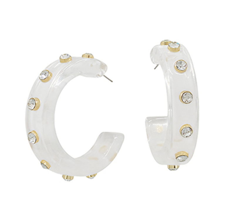 Crystal Station Acetate Hoops Thick - White/Clear