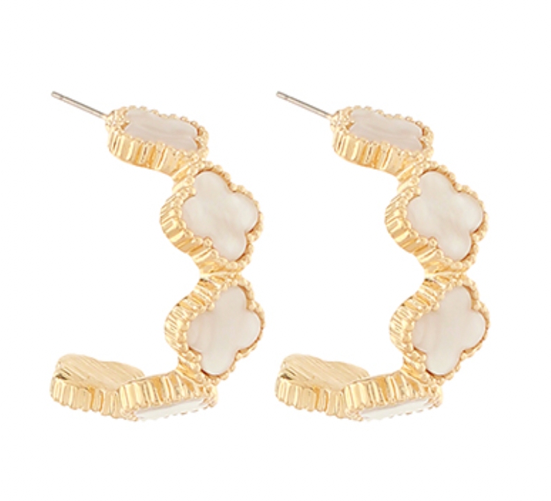MOP Clover Half Hoops - Gold/Cream