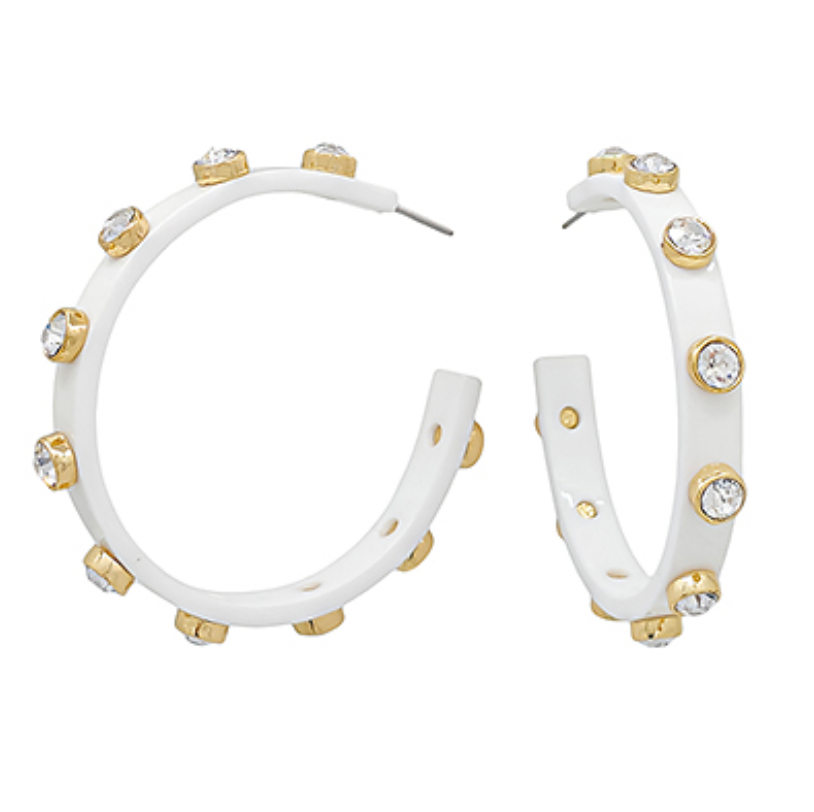 Crystal Station Acetate Hoops - White