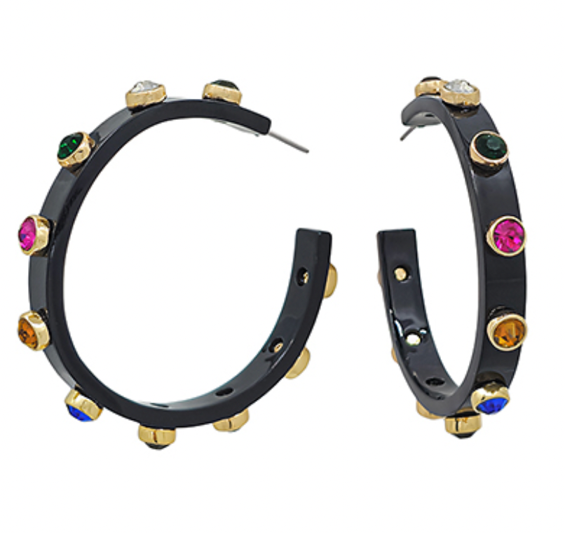 Crystal Station Acetate Hoops - Black/Multi