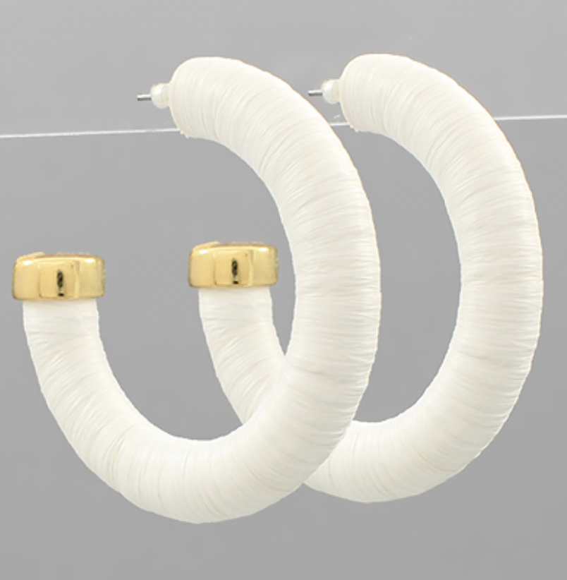Raffia Wrapped Hoops - White