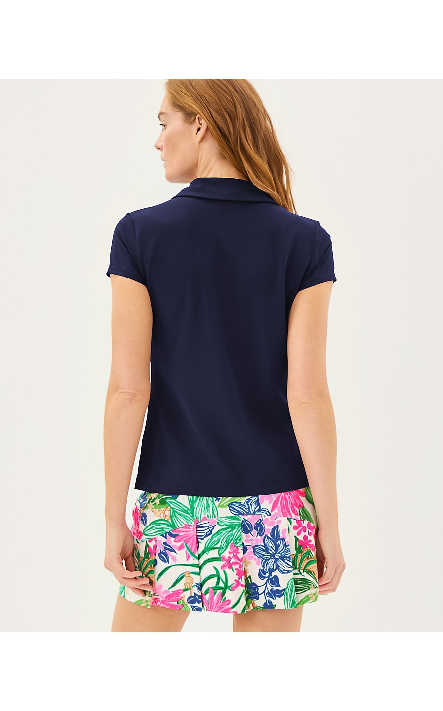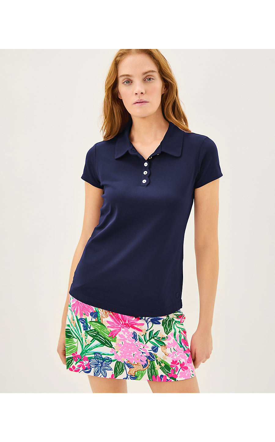 UPF 50+ Luxletic Frida Scallop Polo Top - True Navy