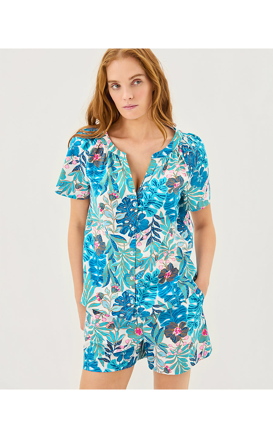 Darcey Woven Pajama Top - Breezy Aqua Best Fronds Forever