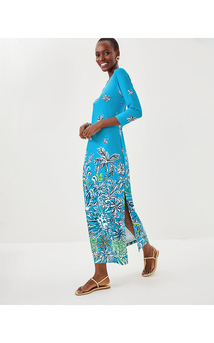 UPF 50+ ChillyLilly Seralina Maxi Dress - Tangier Teal Safari Social Engineered Chilly