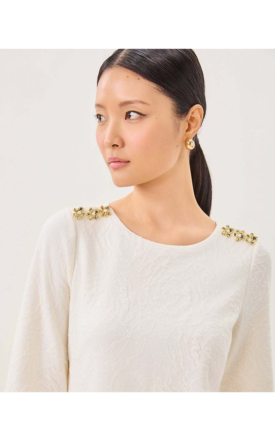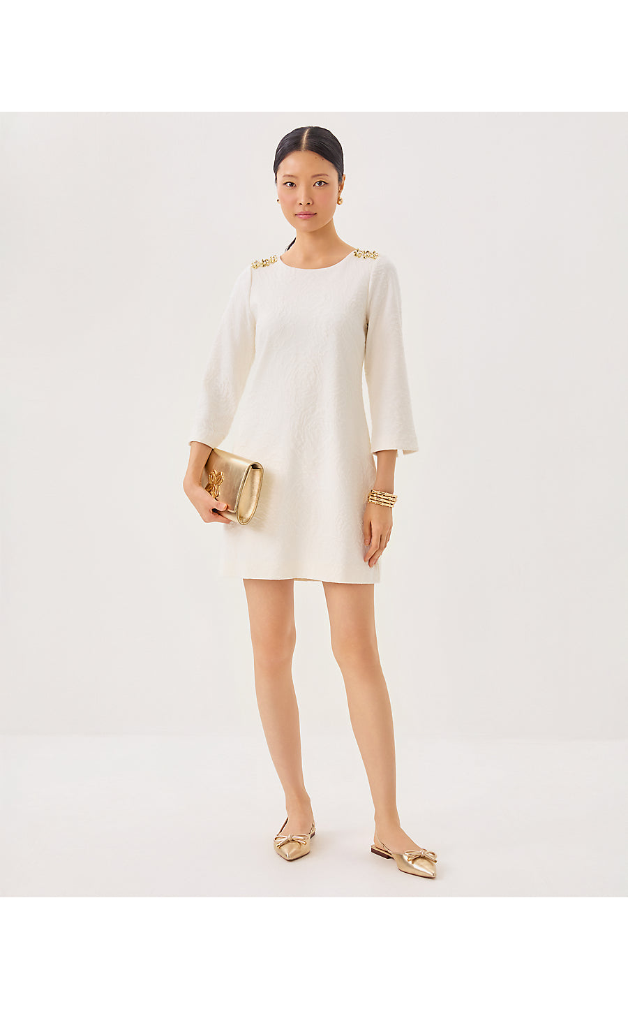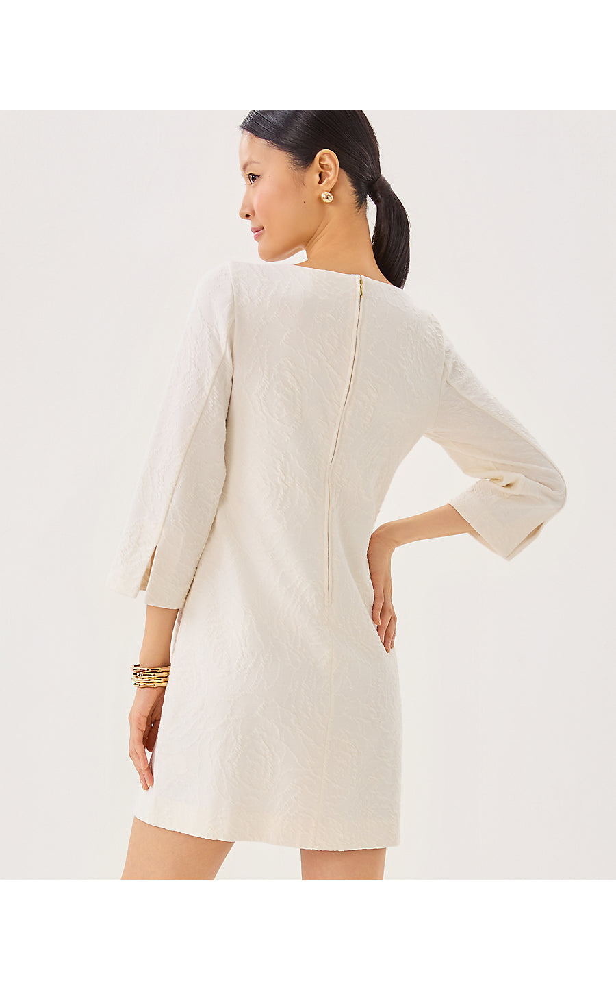 Annwyn 3/4 Sleeve Shift Dress - Coconut Rose Knit Pucker Jacquard