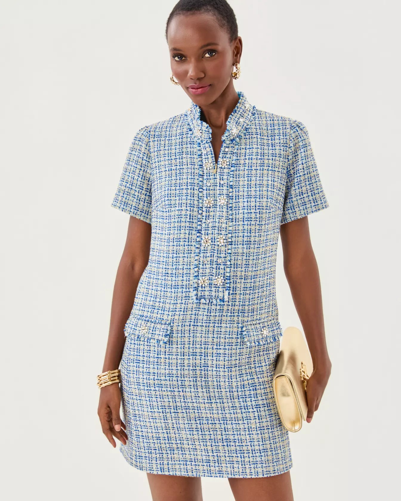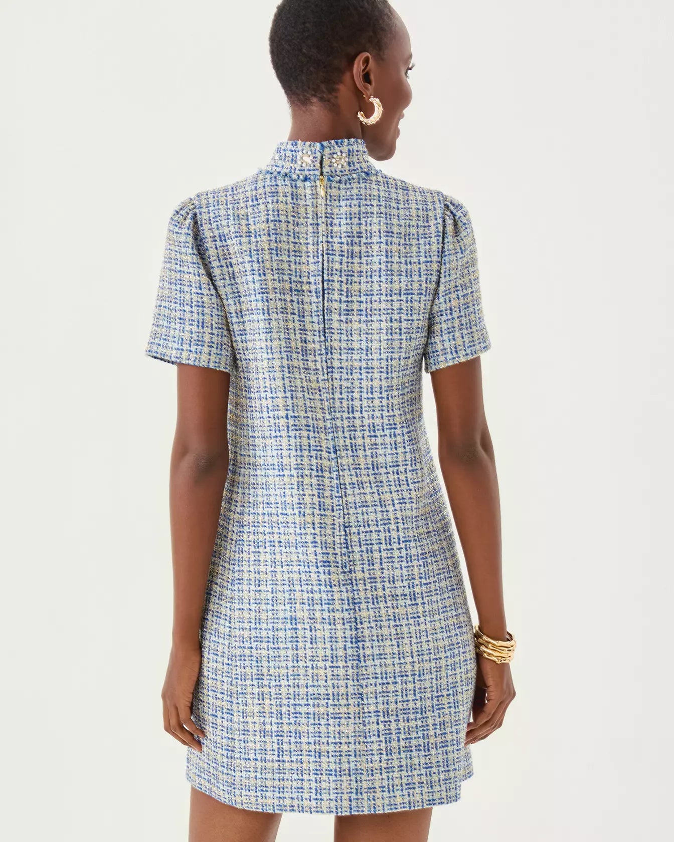 Teddy Boucle Shift Dress - Tangier Teal Ocean Deep Lurex Boucle