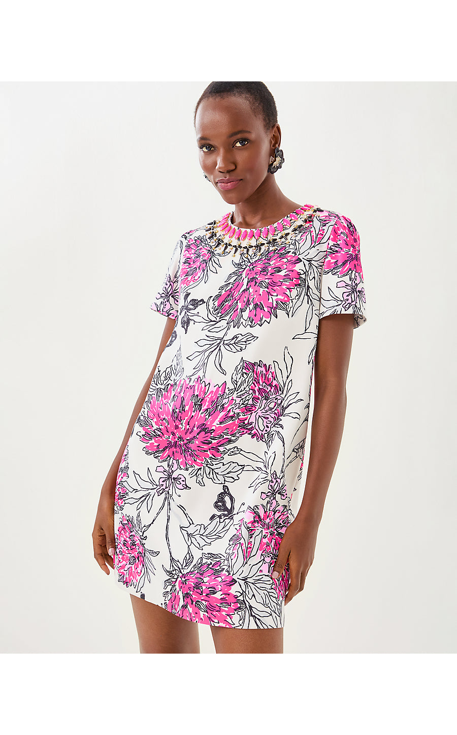 Olive Beaded Stretch Shift Dress - Coconut All Dahled Up Luxe