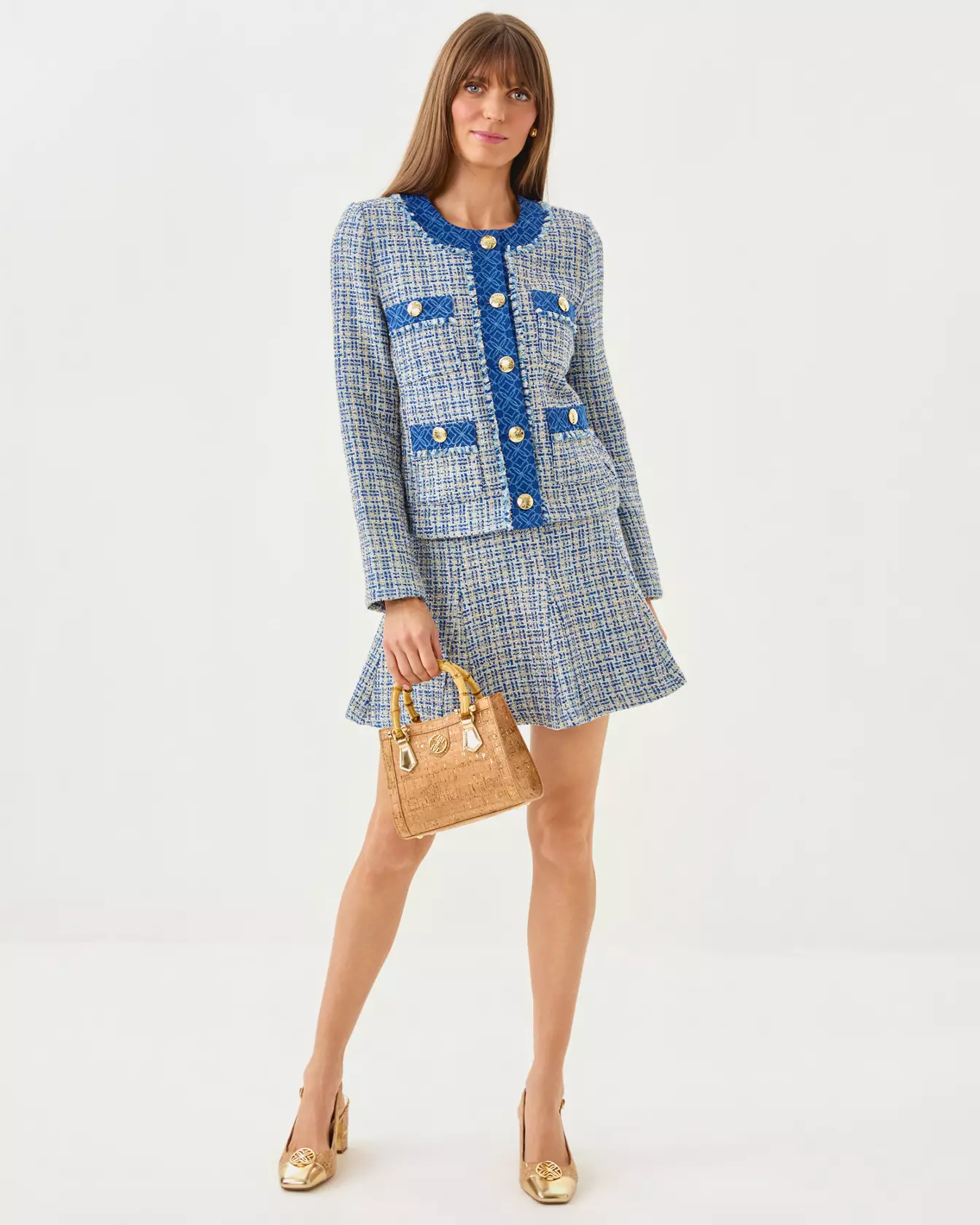 Cammi Boucle Mini Skirt - Tangier Teal Ocean Deep Lurex Boucle