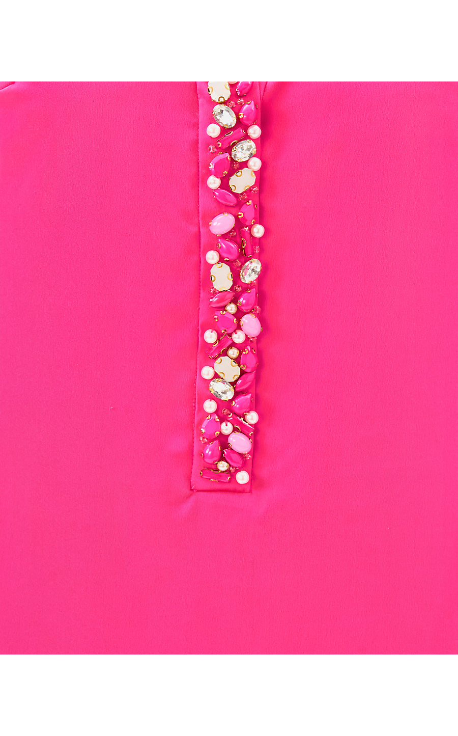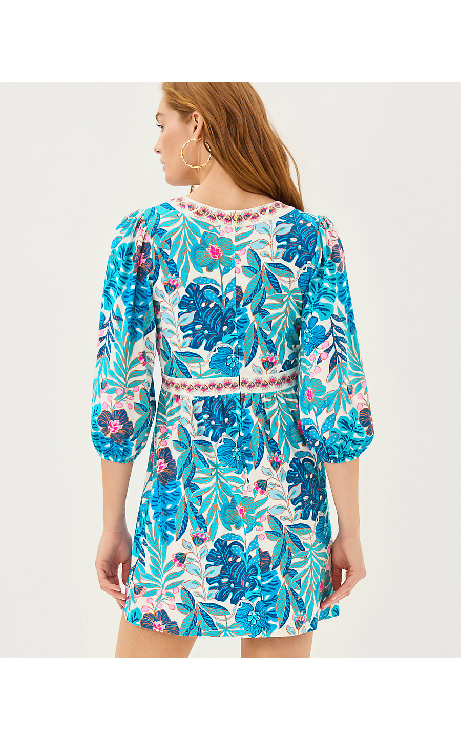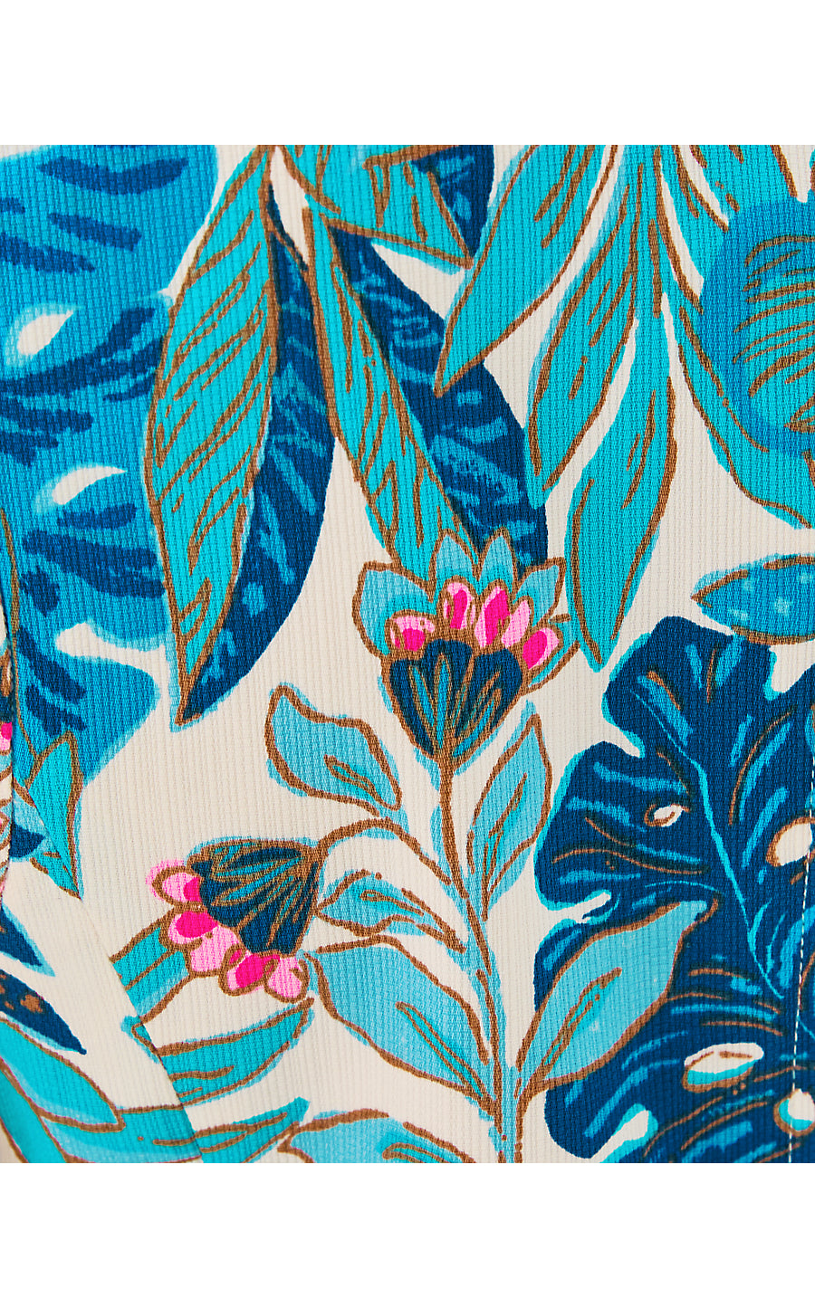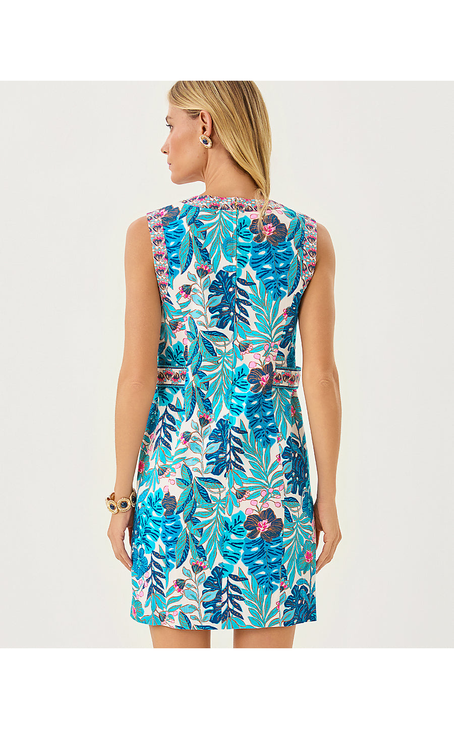 Juno Stretch Shift Dress - Breezy Aqua Best Fronds Forever Engineered
