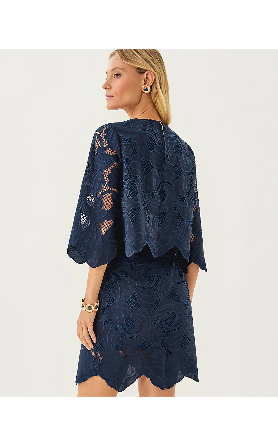 Amabel 3/4 Sleeve Cropped Top - Low Tide Navy Sway With Me Scalloped