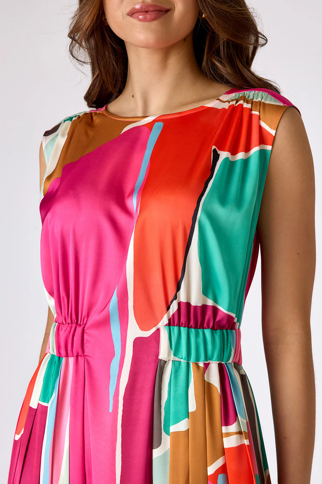 - Fit-and-flare, maxi-length dress with cinched elastic waistband
