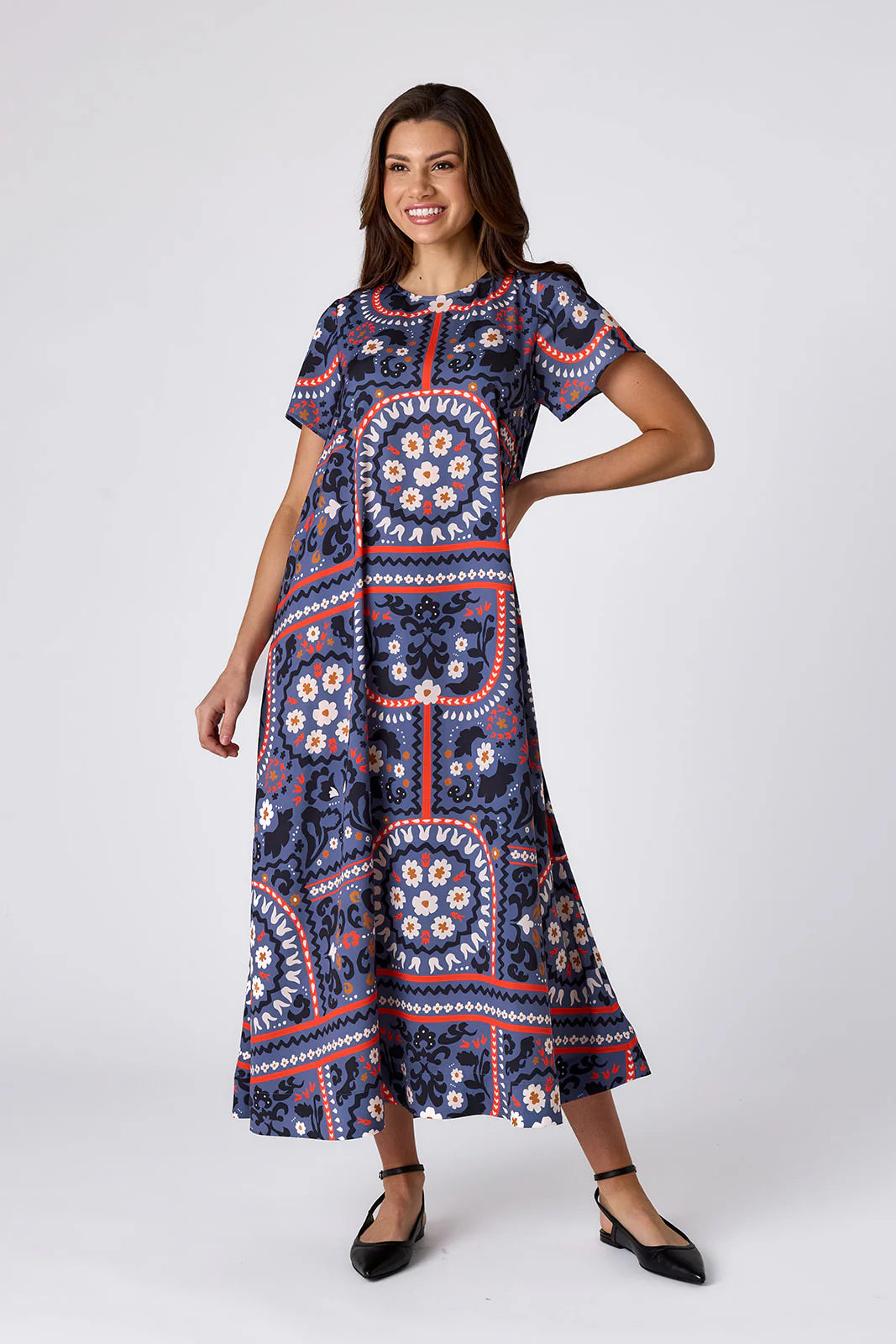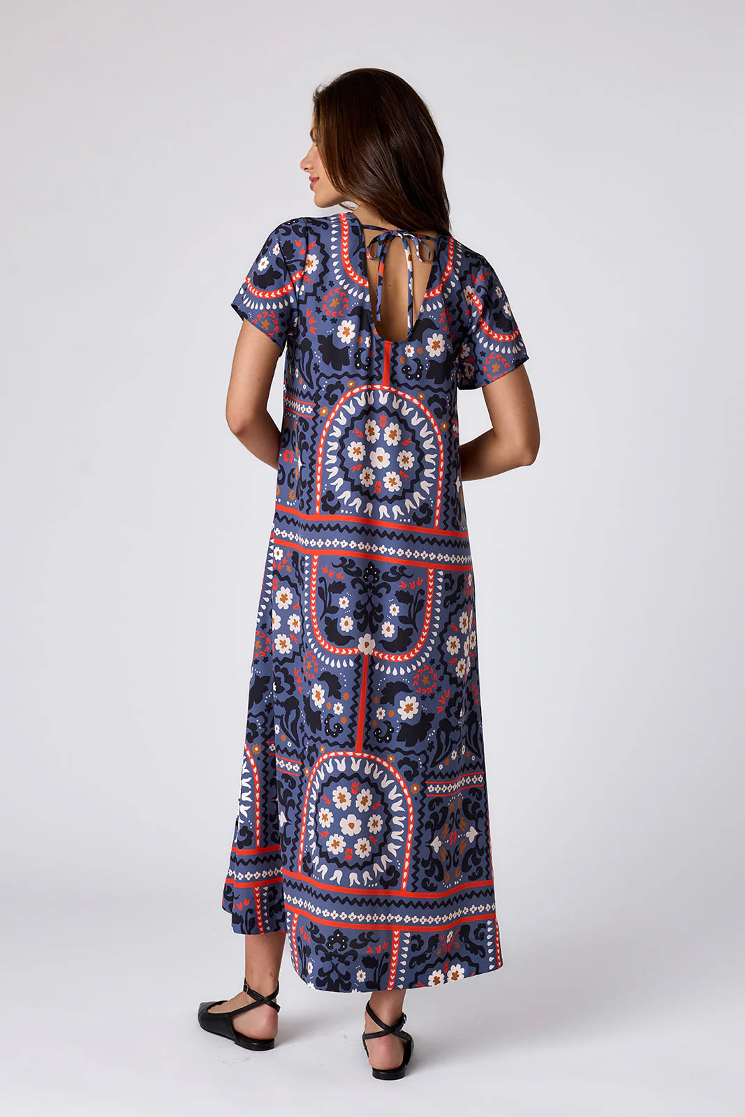 - Tent-style, ankle-length dress