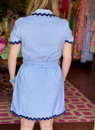 Say “hello” to this brand new style for spring! The Ella dress is crafted in a perfectly coastal seersucker stripe cotton fabric with ric-rac trim. This fully lined, button front dress features puff sleeves, patch pockets along with hidden slit pockets. Plus, the removable belt with woven buckle detail adds that extra special touch. We know this will be a bestseller, so get your hands on it fast!