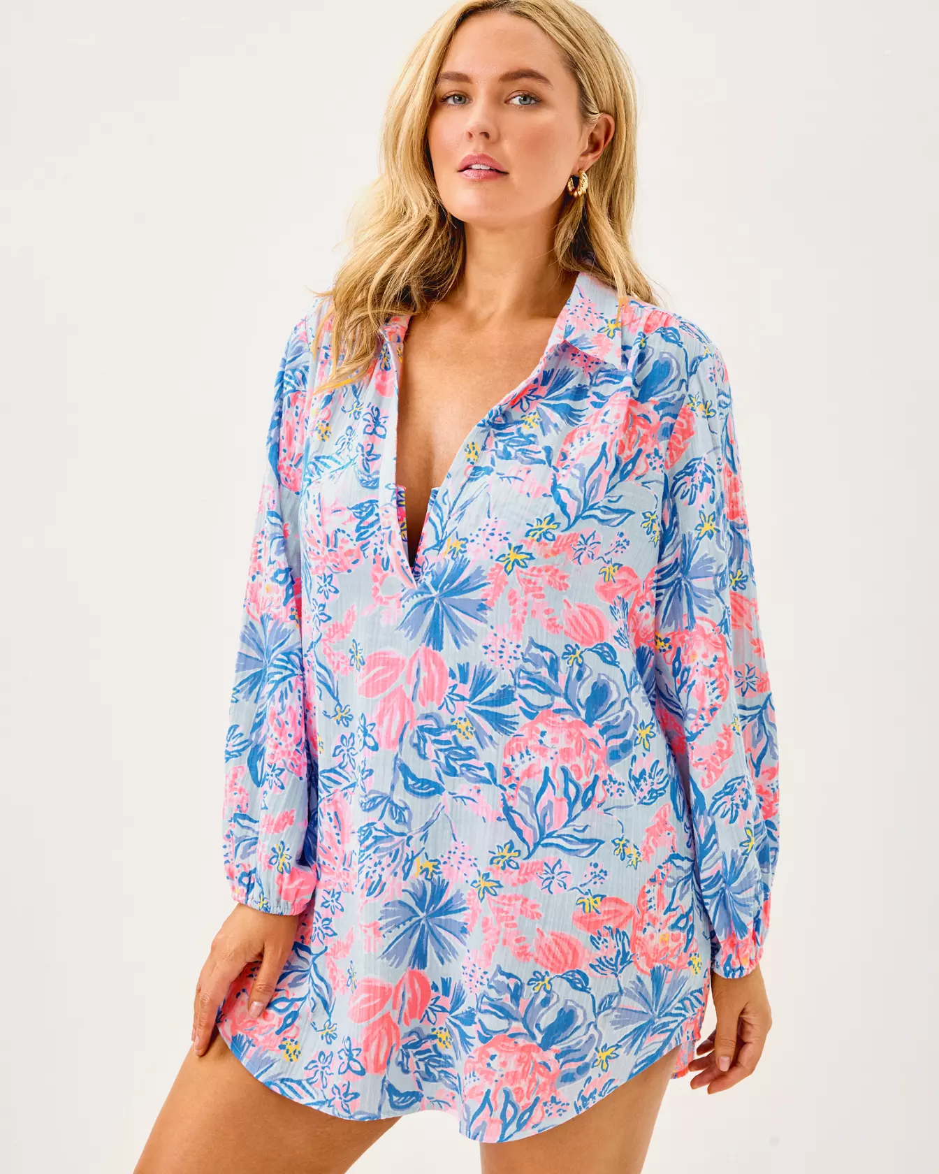 Kique Long Sleeve Cover-Up - Multi Elephant Splash