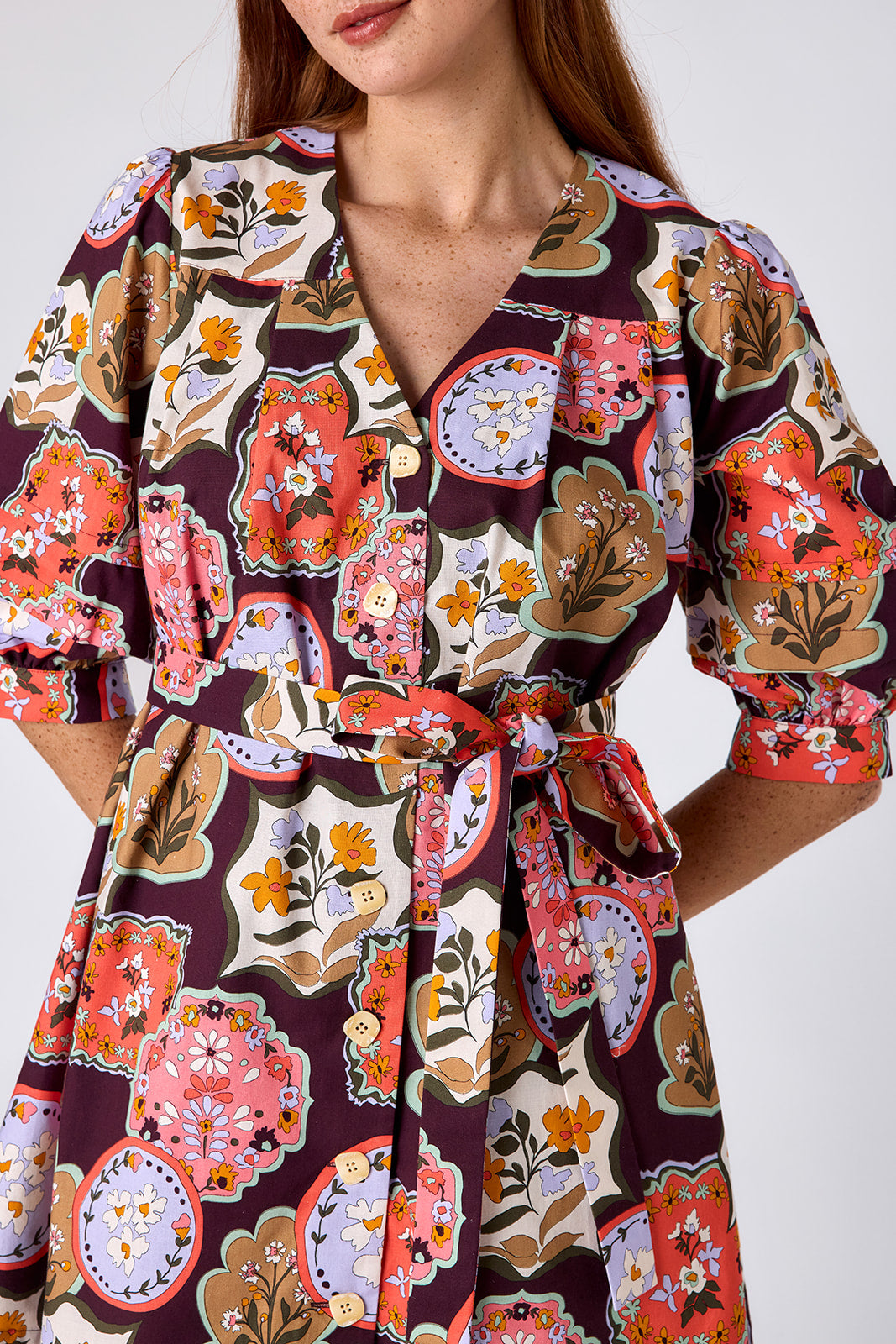 Bold, playful, and full of personality — the Lennie Dress in Stamp Collection by Crosby is a show-stopping piece that celebrates color and print in all the best ways. This statement mini dress is crafted from lightweight, breathable cotton poplin and features a striking collage-style floral print in rich hues of burgundy, coral, lavender, and marigold. The unique “stamp” motif gives it a one-of-a-kind vintage-inspired charm, while its easy-to-wear silhouette makes it a versatile option for any occasion.
