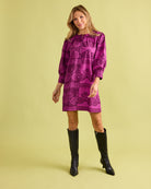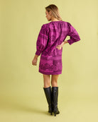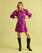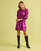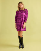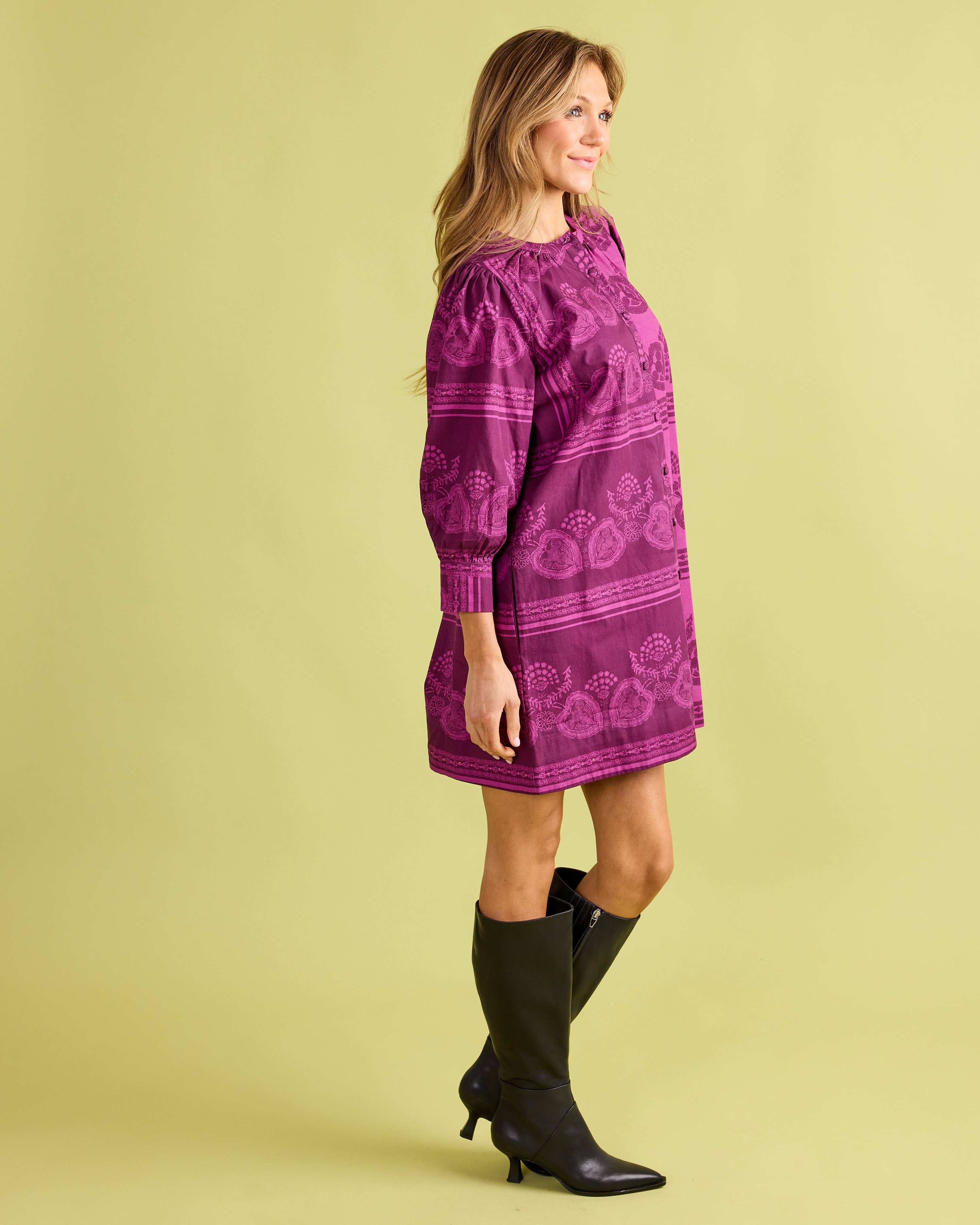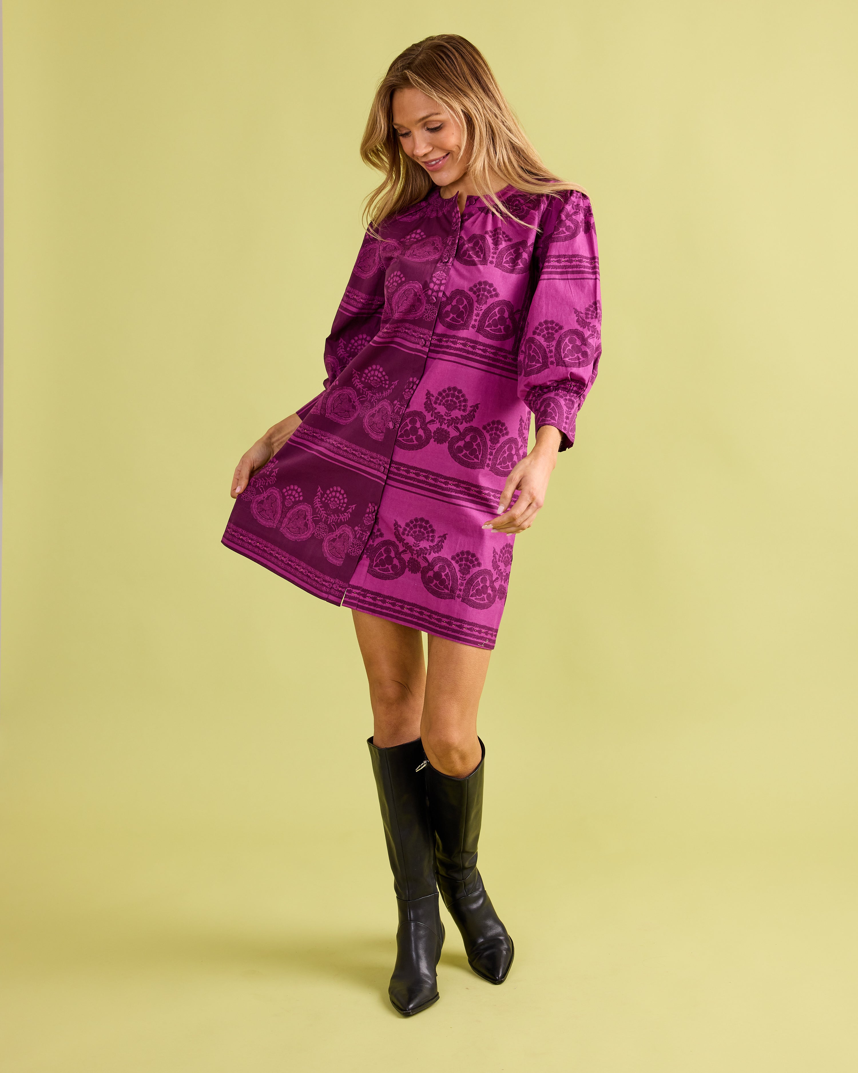 Bold, feminine, and effortlessly chic—the Paloma Dress makes a statement with ease. Designed in a rich berry hue with tonal embroidered-inspired detailing, this dress features a relaxed shift silhouette, full button front, and gently gathered neckline. The long blouson sleeves add volume and elegance, while the above-the-knee length keeps it modern and versatile. Pair with tall boots for a polished fall look or dress it down with flats for everyday wear.