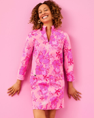 - Straight fit, 3/4 sleeve, pullover shift dress.