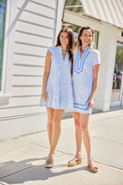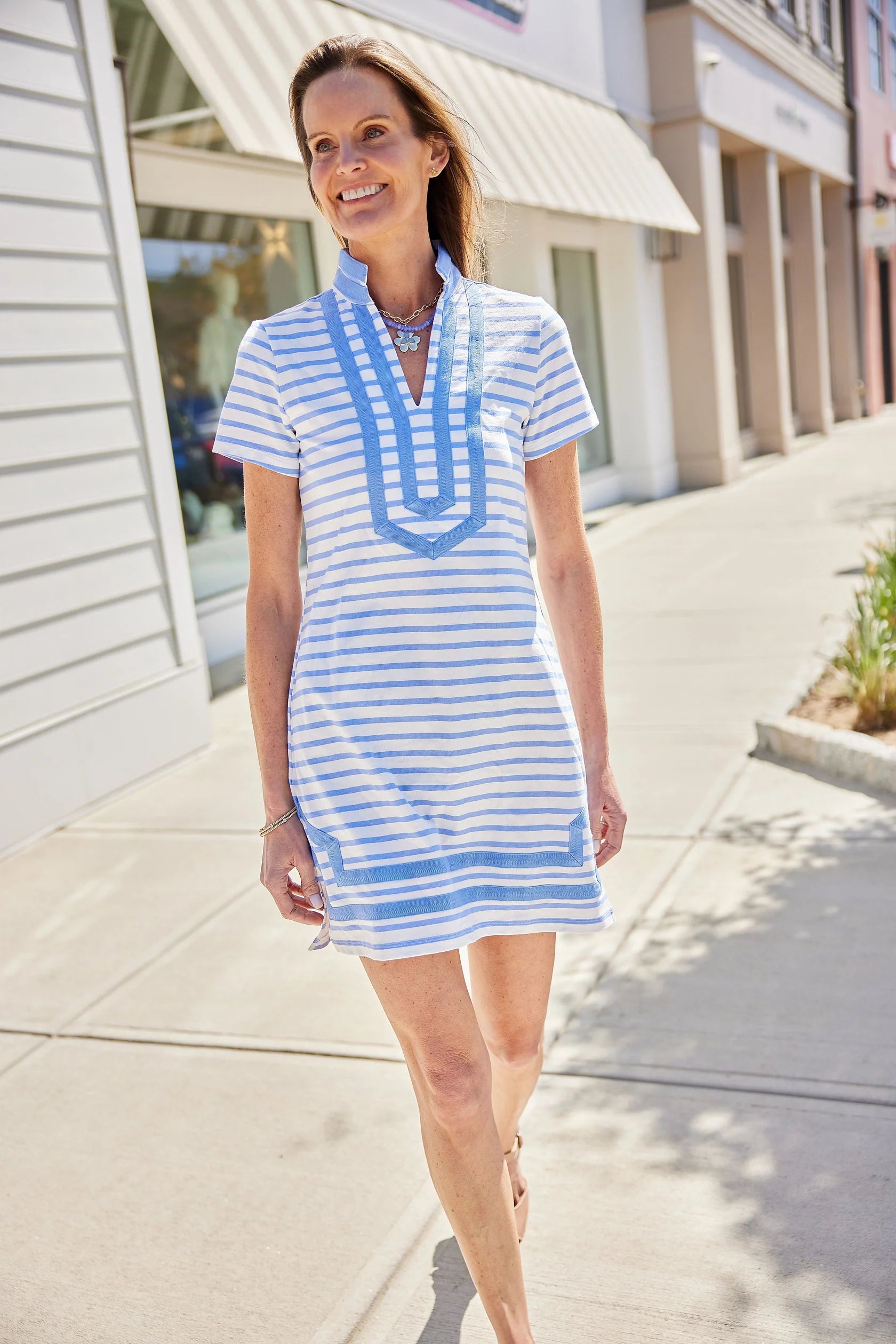 Short Sleeve Tunic Dress - White Hydrangea Stripe