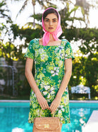 The Short Sleeved Lilly Shift Dress - Fiddle Leaf Green Once and Floral