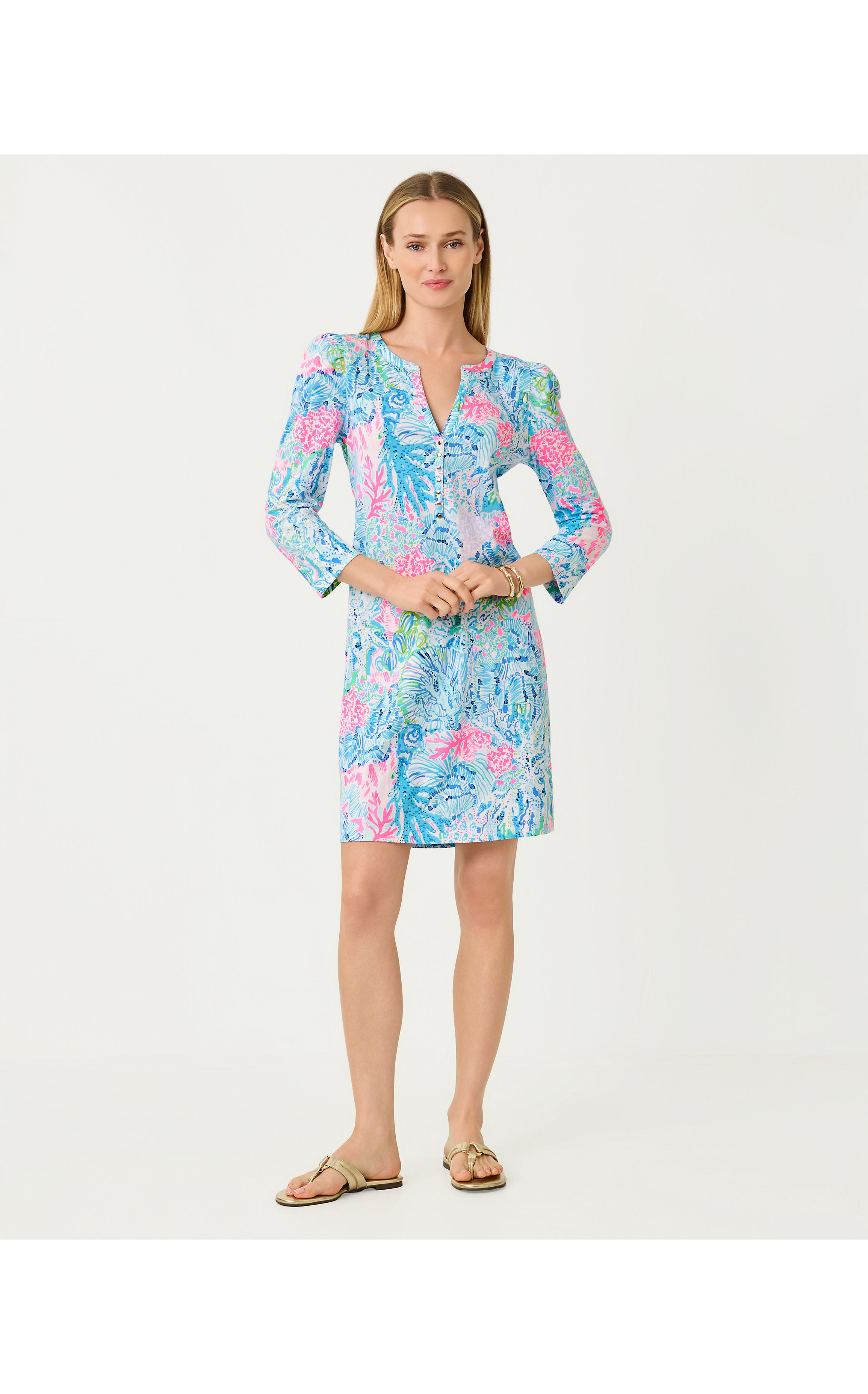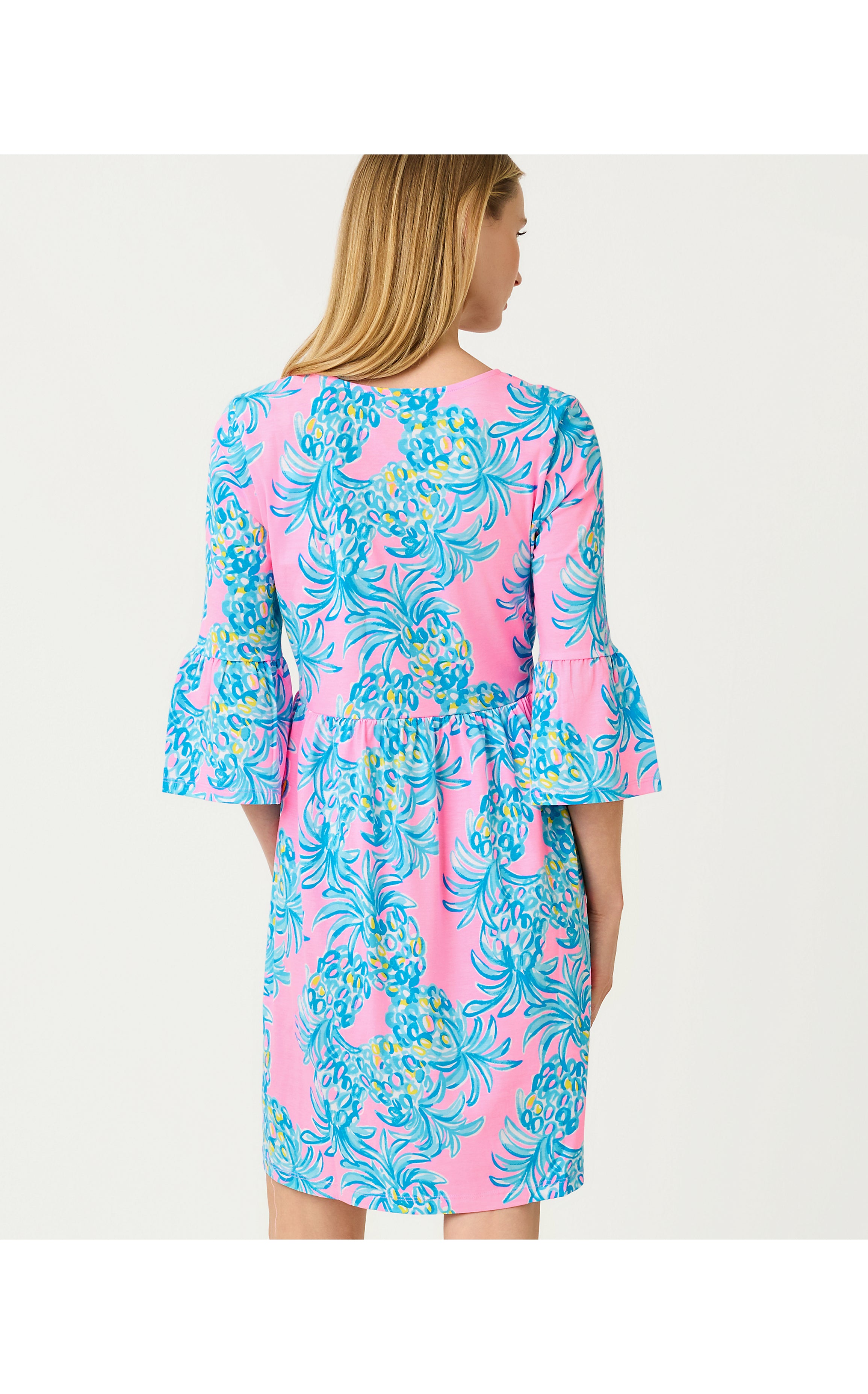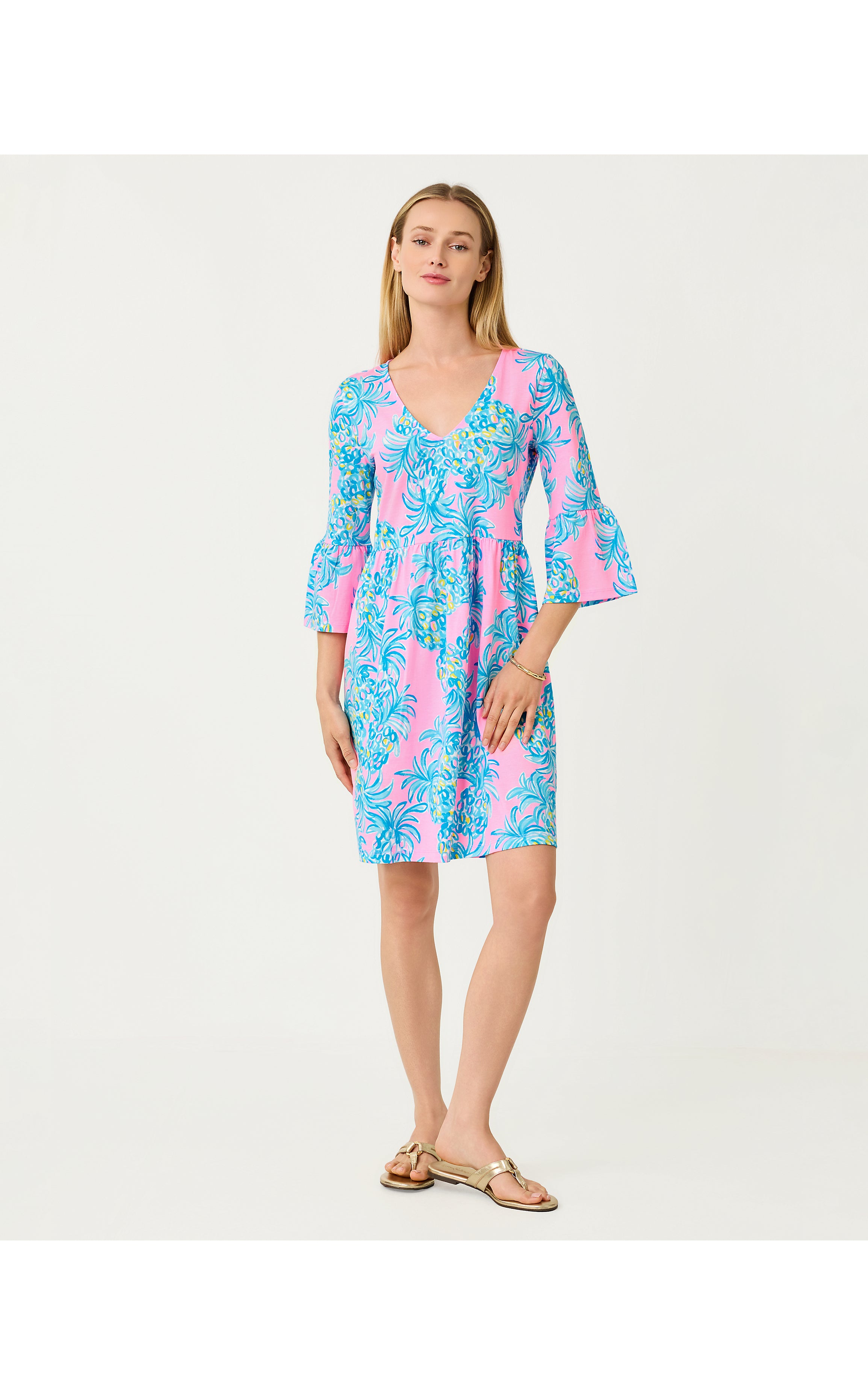 Jannie V-Neck 3/4 Sleeve Dress - Pelican Pink Beat The Heat