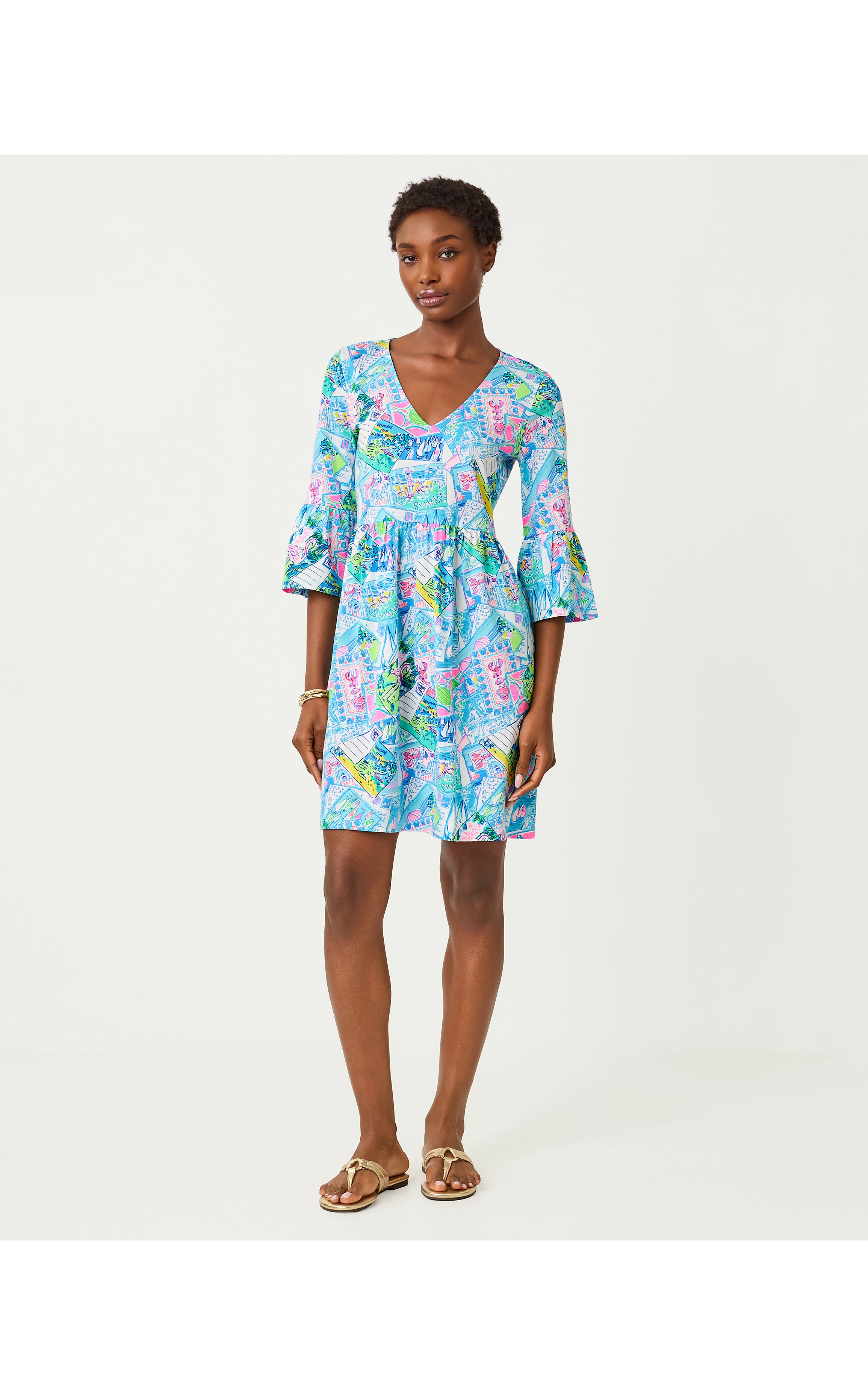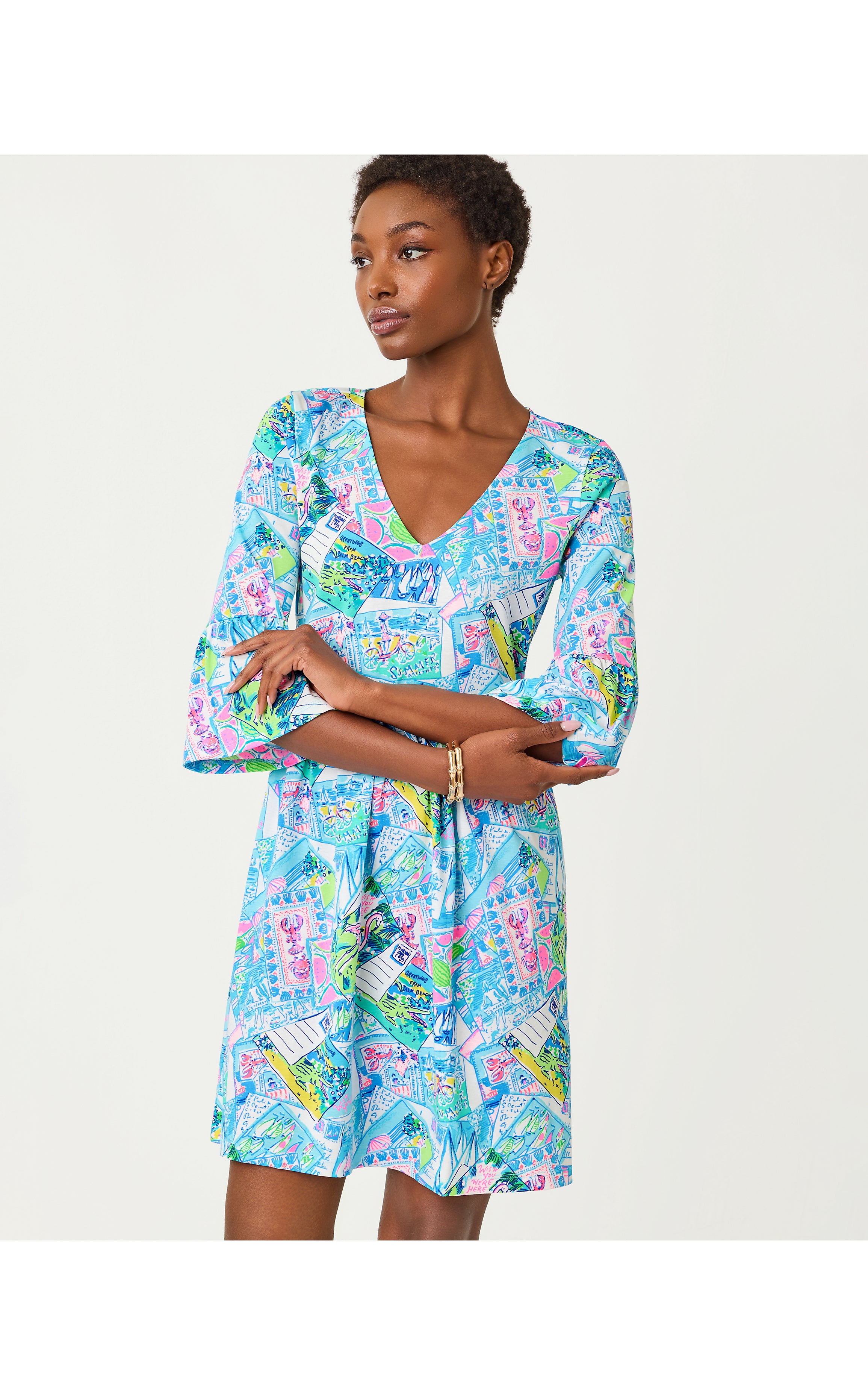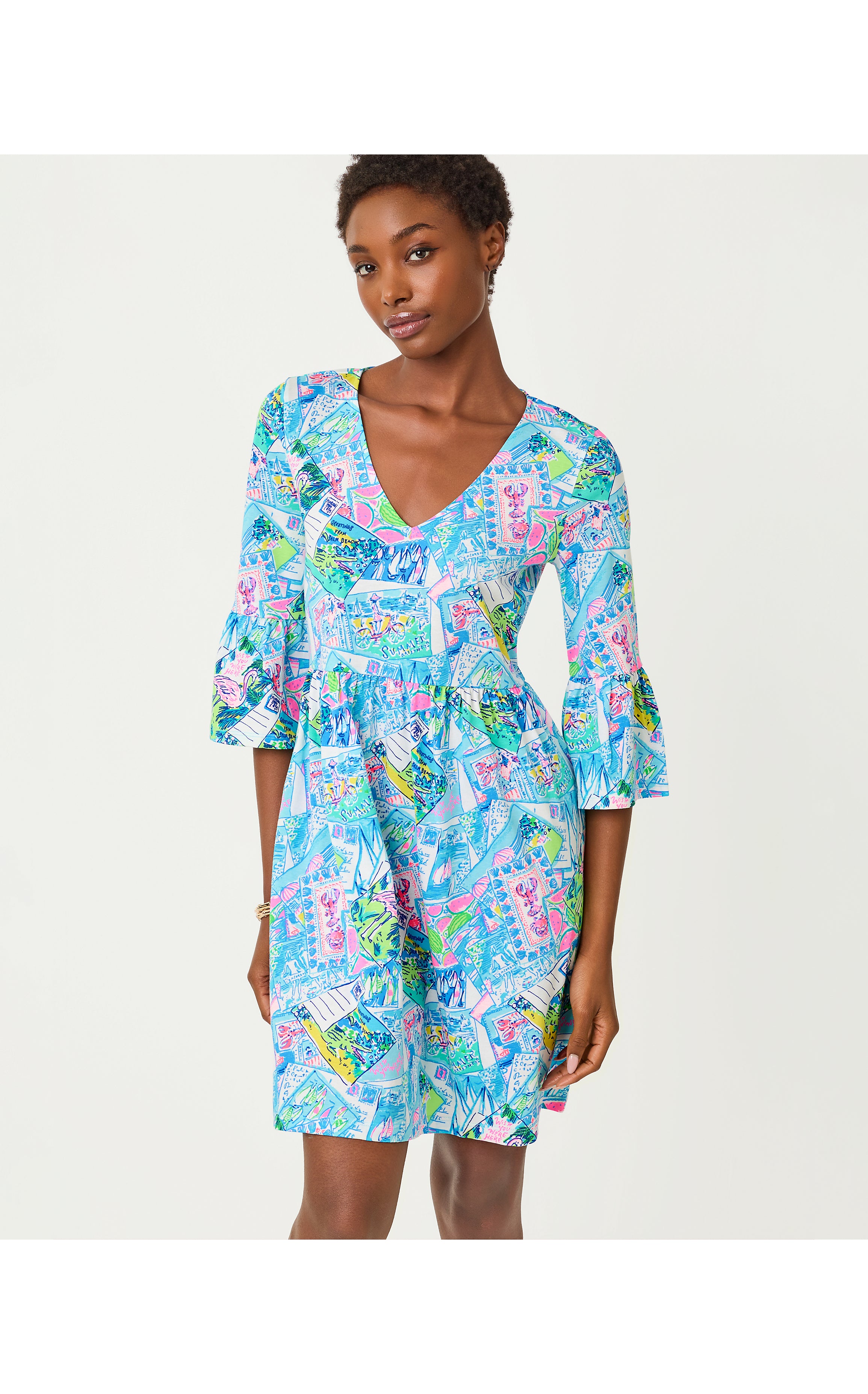 Jannie V-Neck 3/4 Sleeve Dress - Multi Wish You Were Here