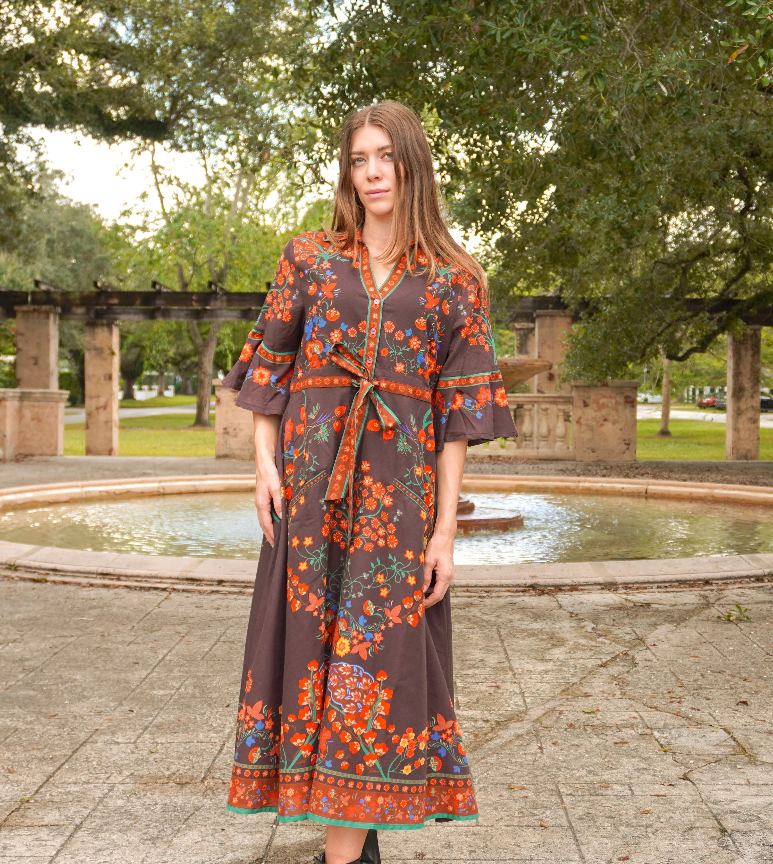 Larkyn Midi Shirtdress - Multi Glowing Gardens