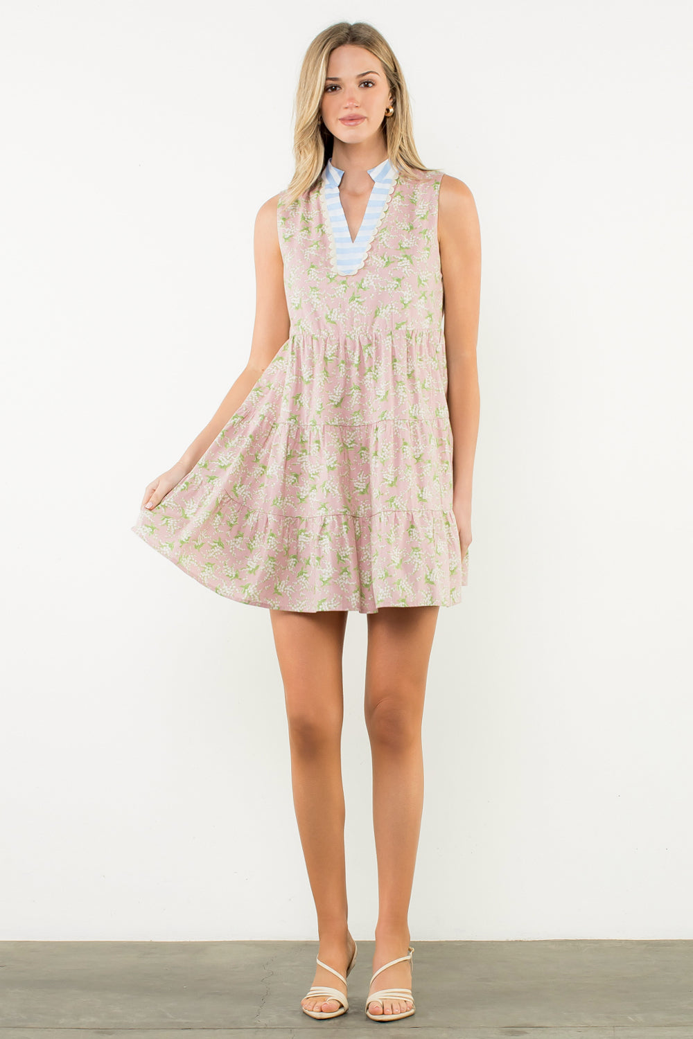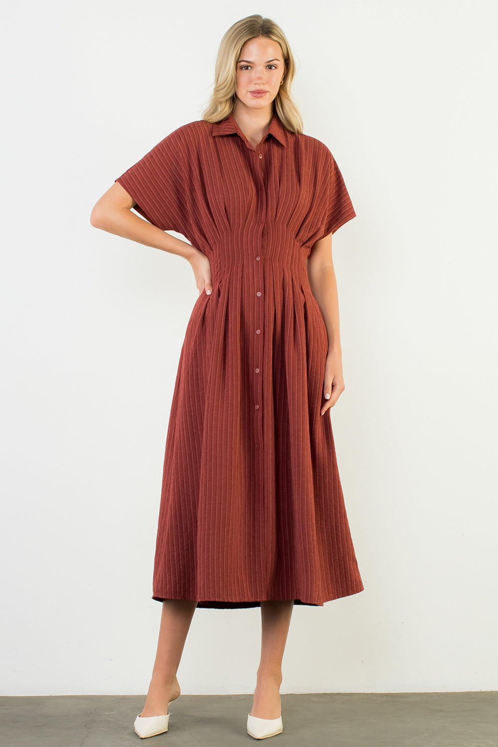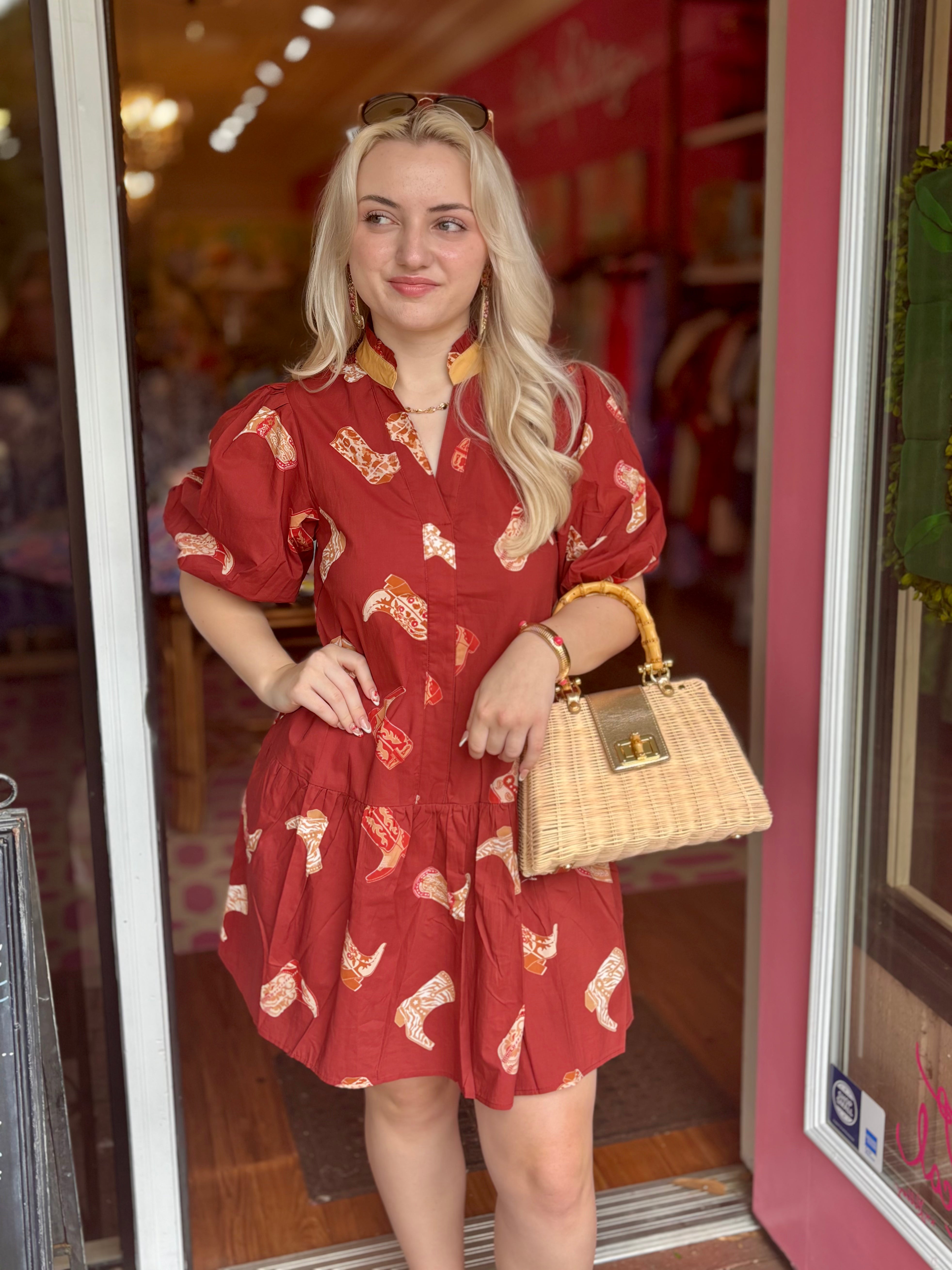 Puff Sleeve Floral Detailed Midi Dress - Beige