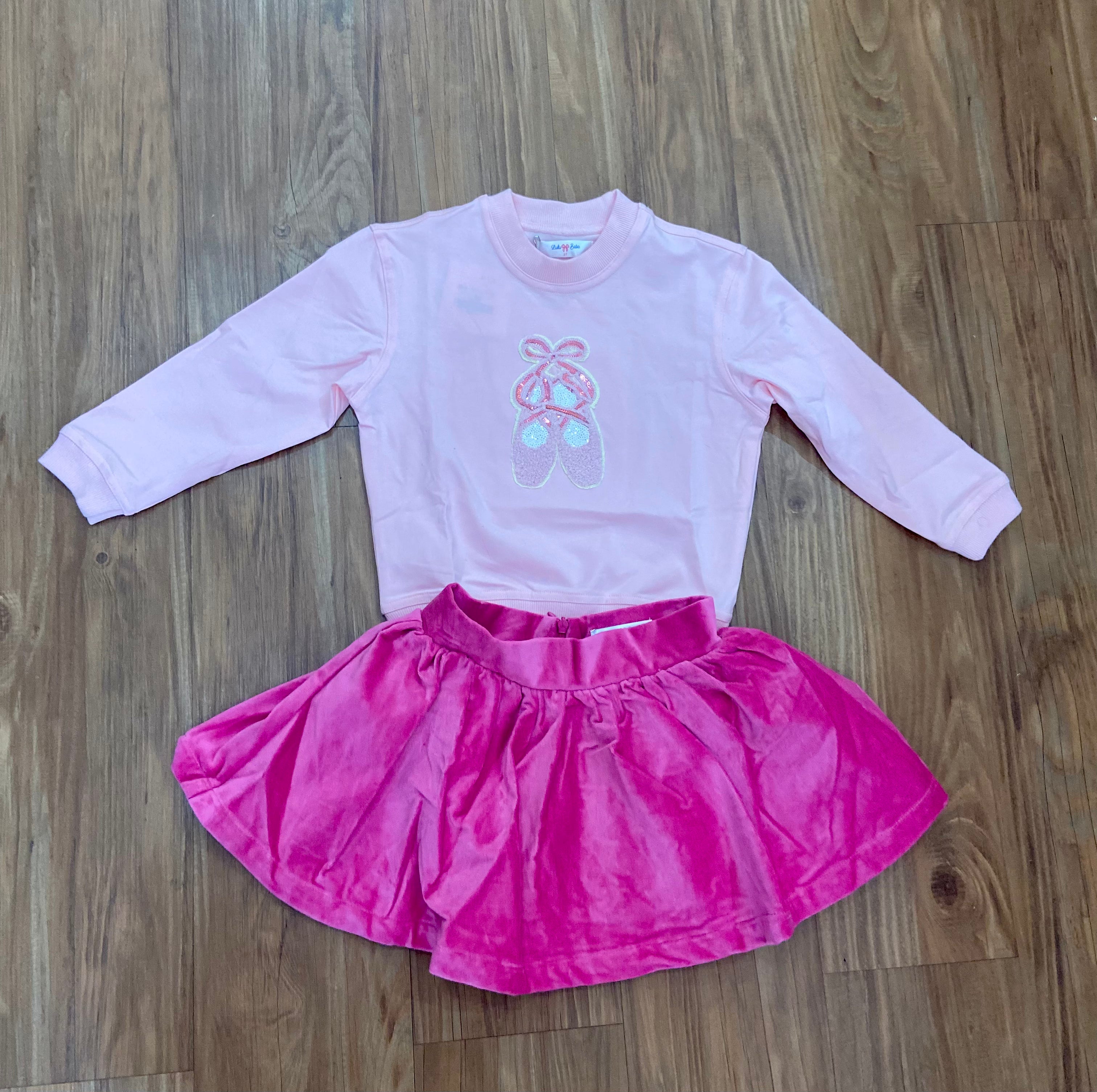 The standout detail is its enchanting ballet motif: a beautifully stitched pair of ballet slippers centered on the front. This delicate design captures the timeless magic of ballet and adds a sweet, eye-catching accent that makes this top feel extra special. Every stitch reflects Lulu Bebe’s dedication to classic children’s style—blending nostalgic charm with modern quality.