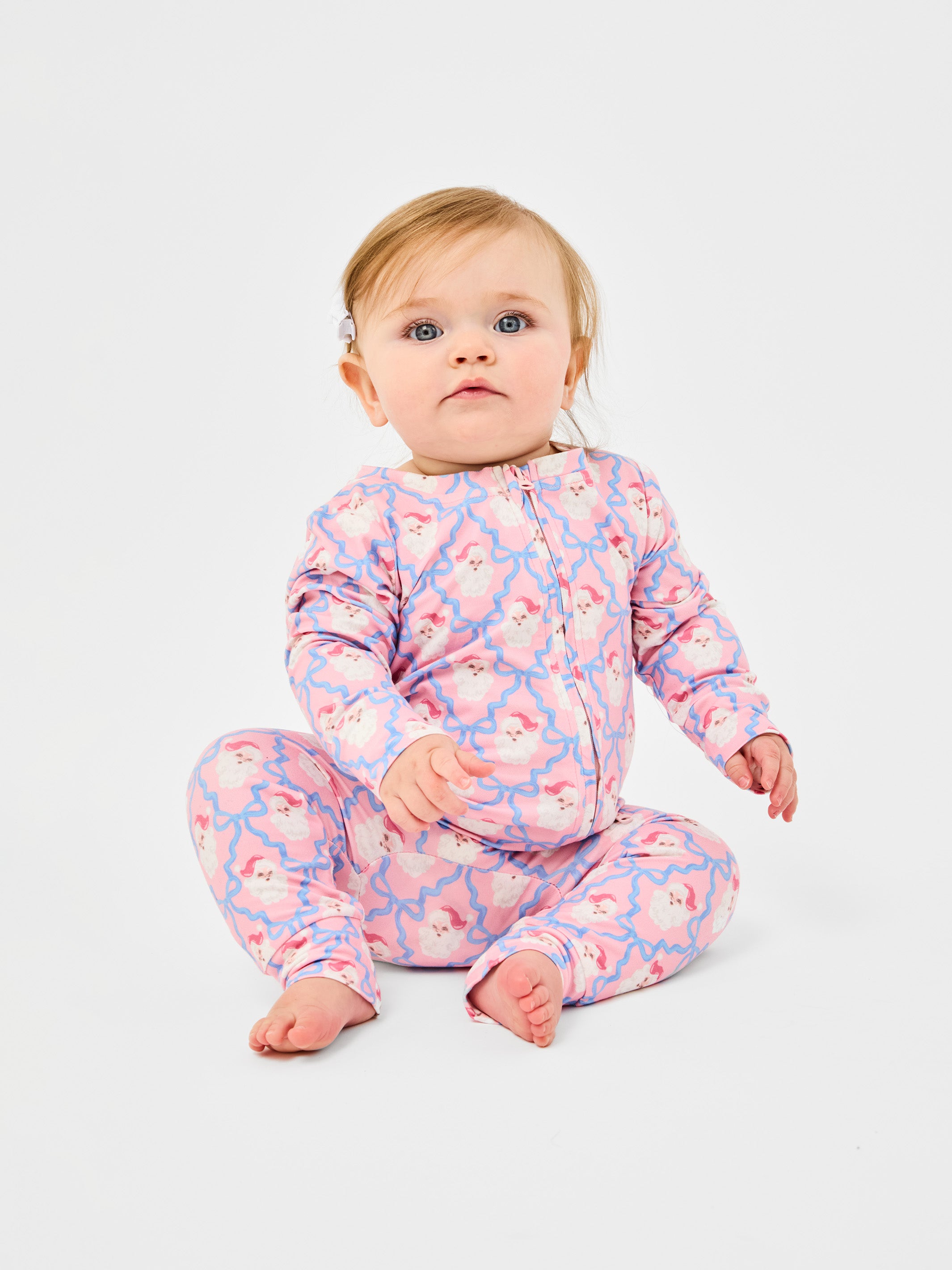 Featuring a light purple/pink and white color palette, the “Santa Baby Bows” print brings a whimsical, playful twist to classic holiday sleepwear. The charming all-over bows pattern captures the magic of the season while keeping your baby looking irresistibly cute for photos, holiday mornings, and cozy snuggles.