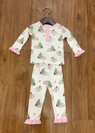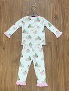 A piped trim along the neckline and hems gives the set a refined finish, while the quality stitching and attention to detail reflect Lulu Bebe’s dedication to timeless design and premium craftsmanship. Lightweight yet cozy, these pajamas are perfect for cool evenings or lazy mornings curled up with a favorite book or stuffed animal.