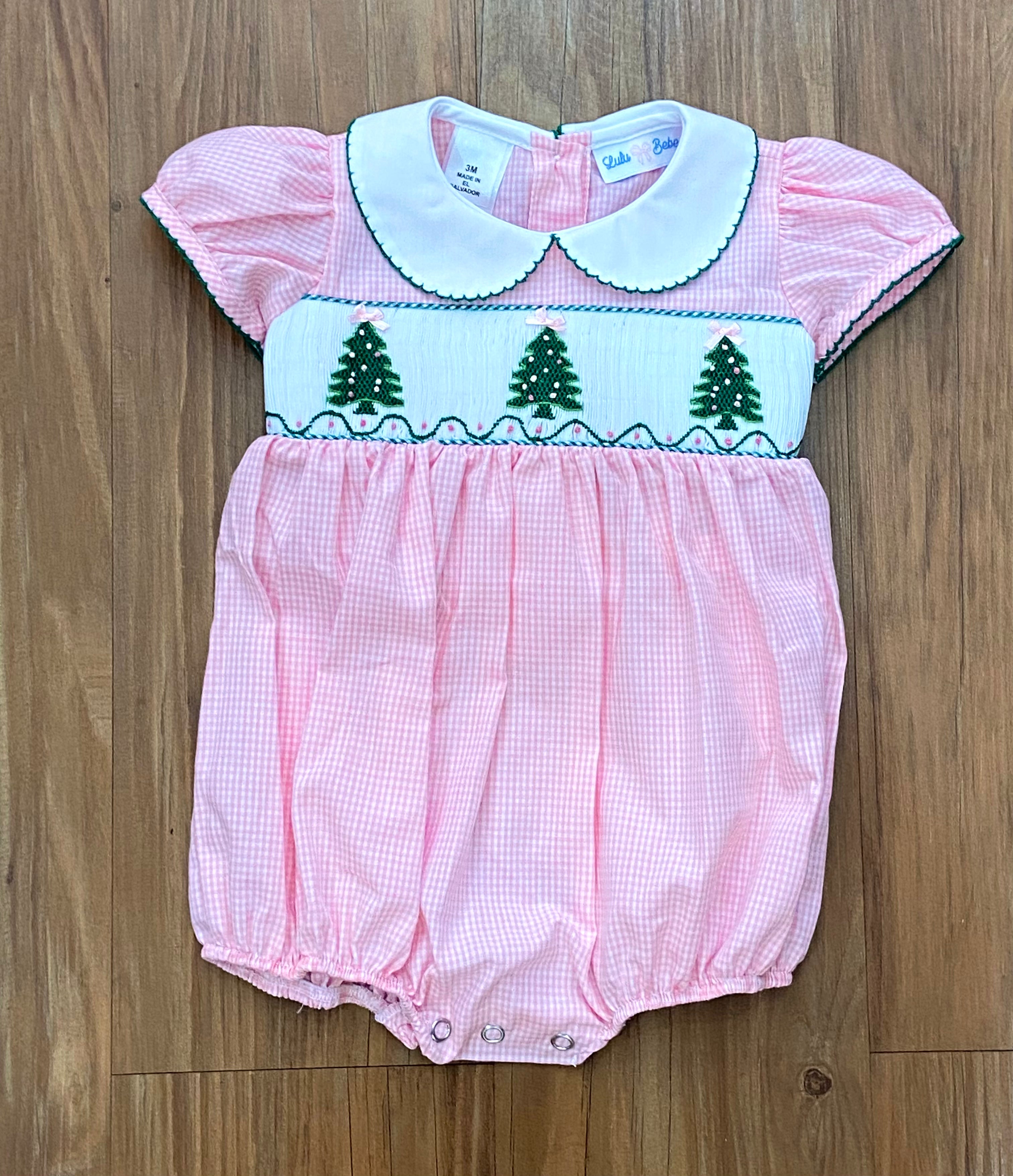Thoughtfully designed and expertly crafted, the Rosie Smocked Bubble - Tree/Pink by Lulu Bebe is a beautiful keepsake that can be passed down for generations of holiday memories.