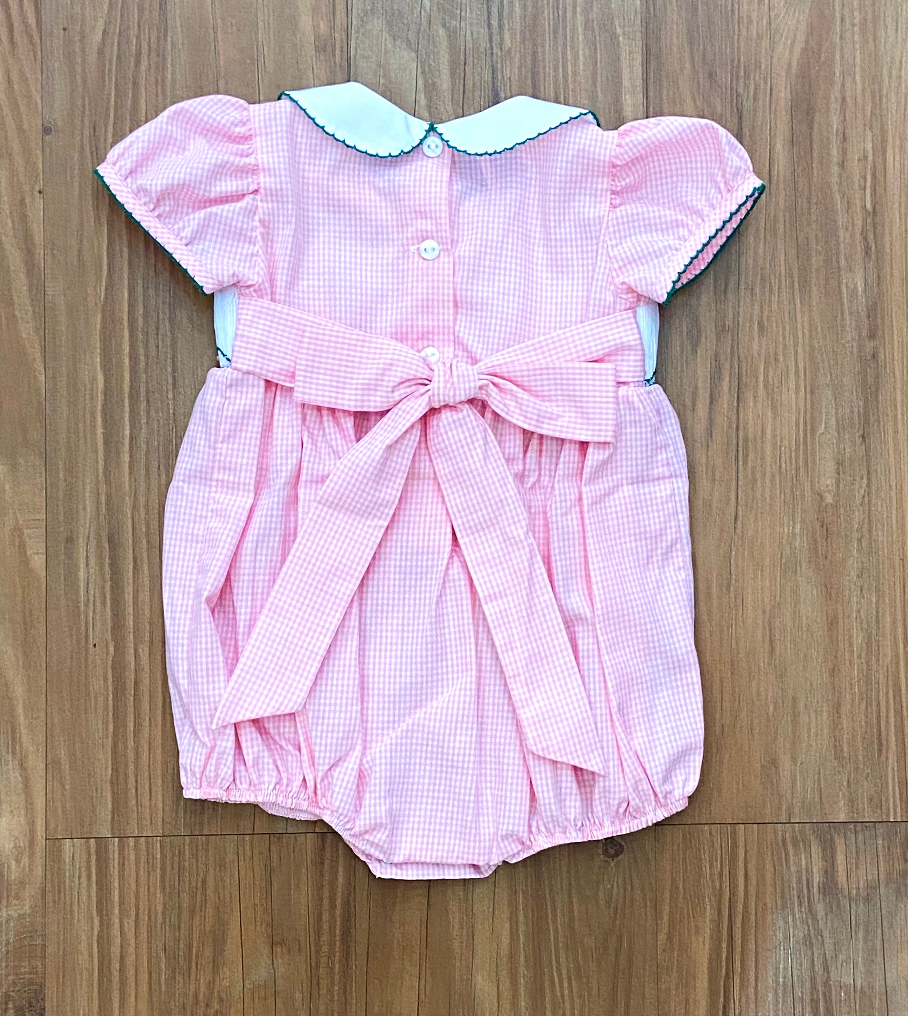 Crafted from soft pink cotton, this bubble offers a gentle, comfortable fit for all-day wear. The traditional puff sleeves, ruffle trim, and gathered silhouette add to its heirloom appeal, while the lightweight fabric ensures breathability and ease of movement. Perfect for holiday portraits, family gatherings, or Christmas morning celebrations, this piece captures the spirit of the season with elegance and charm.