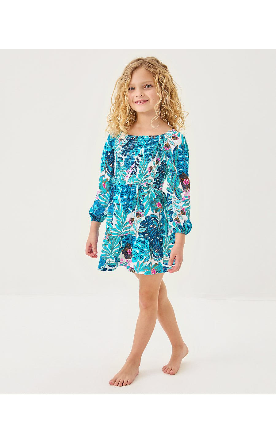Girls Little Lilly Classic Shift Dress - Coconut Swayin In The Breeze Engineered