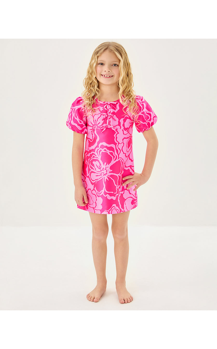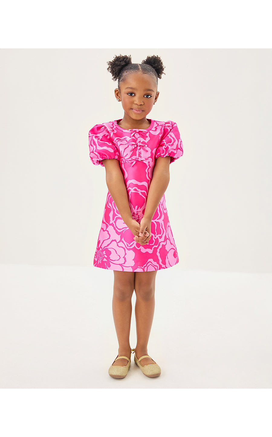 Girls Mini Britnee Dress - Parigi Pink Go Big Satin Jacquard