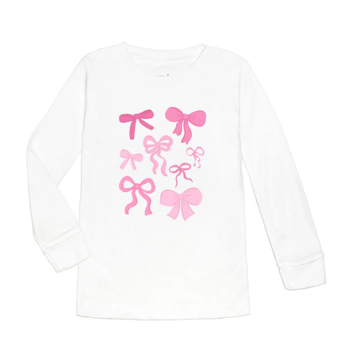 Kids Coquette Bow Doodle Long Sleeve Shirt - White