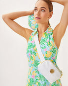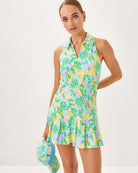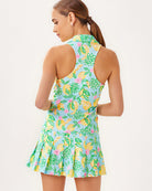 Play in print wearing our bold UPF 50+ Luxletic Dania Pleated Dress.
