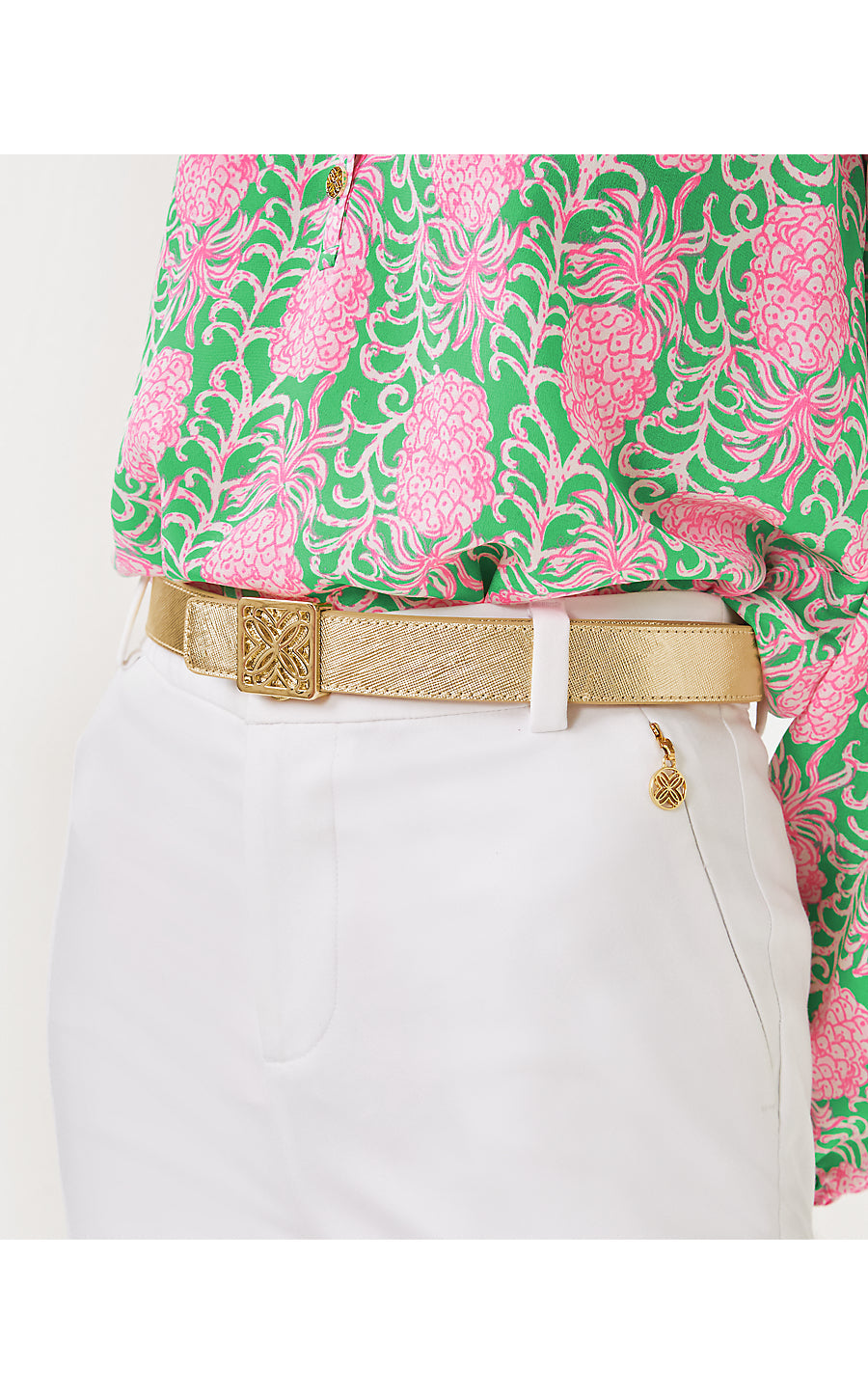 Complete your outfit with a golden touch, courtesy of our Skinny Leather Logo Belt.