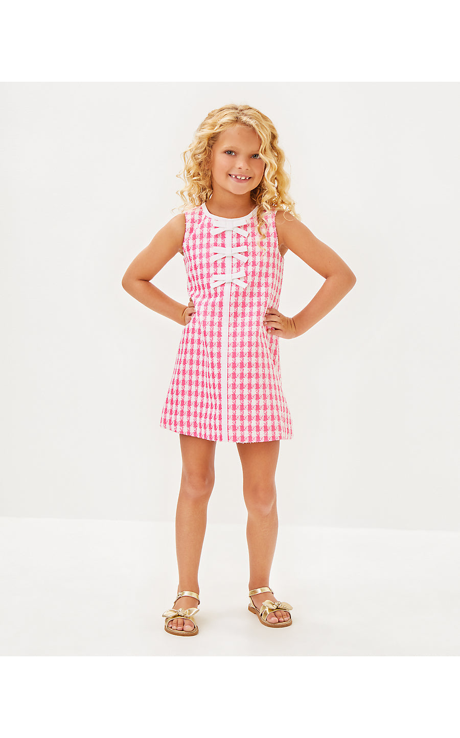 Girls Mini Aria Shift Dress - Rousseau Pink - Charming Check Boucle