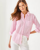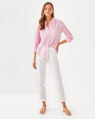 Sea View Button Down Top - Conch Shell Pink - LTWT Oxford Stripe