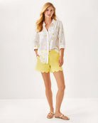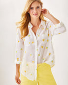 Sea View Linen Button Down Top - Honeycomb - Lemon Bee Half Drop
