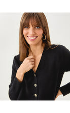 - Long sleeve, v-neck cardigan with a button closure.