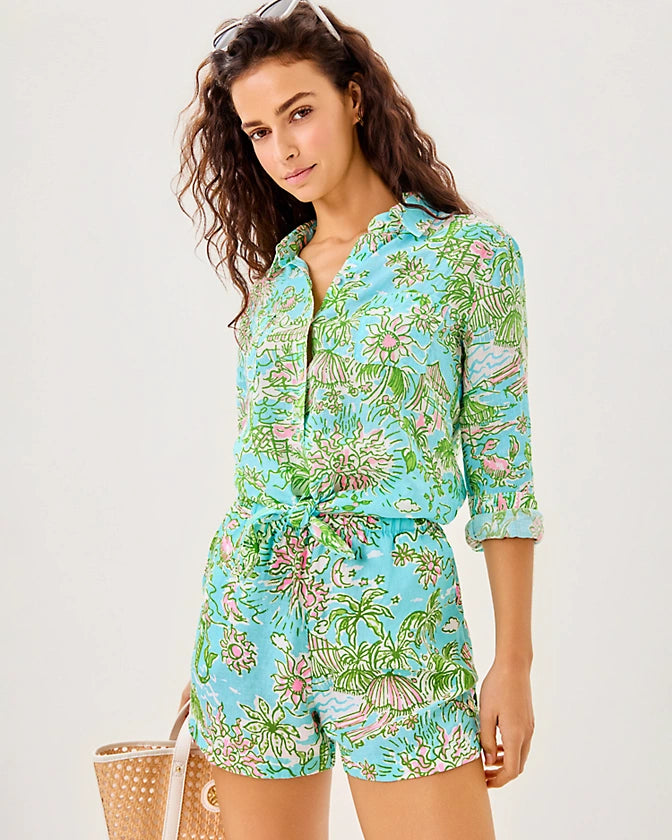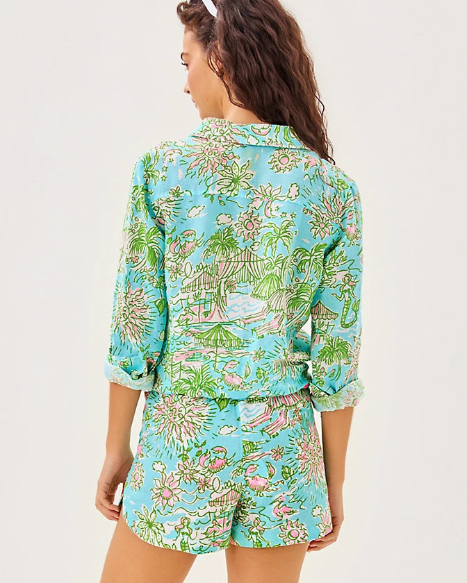 Sea View Linen Button Down Top - Fresh Water Blue Sunbathers Bliss