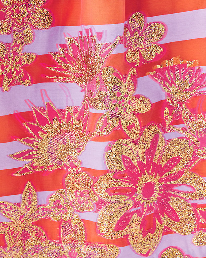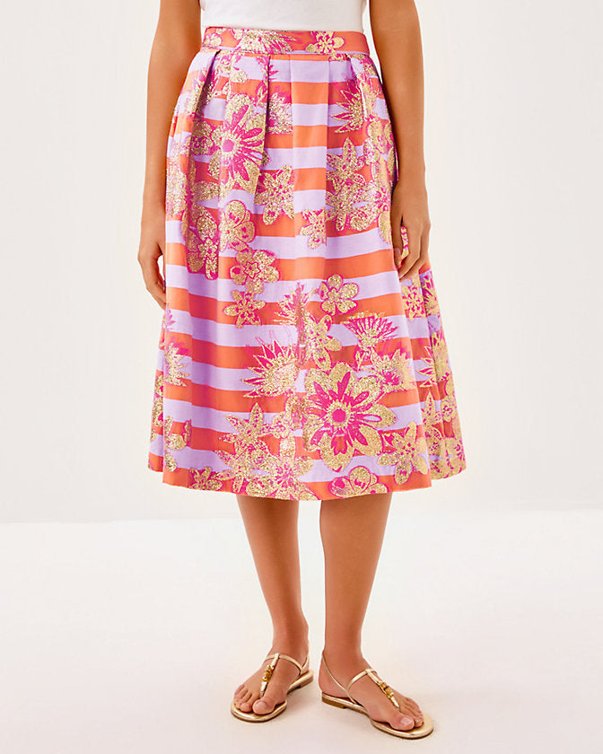 Lauderdale Midi Skirt - Papaya Metallic Floral Stripe Jacquard