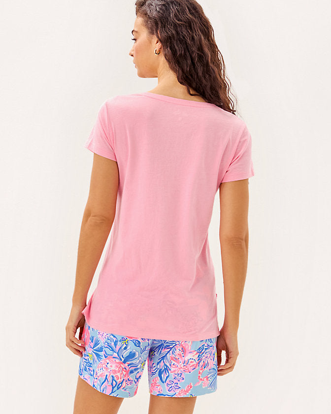 3" Elodey Linen Short - Conch Shell Pink Happy Hour Embroidery