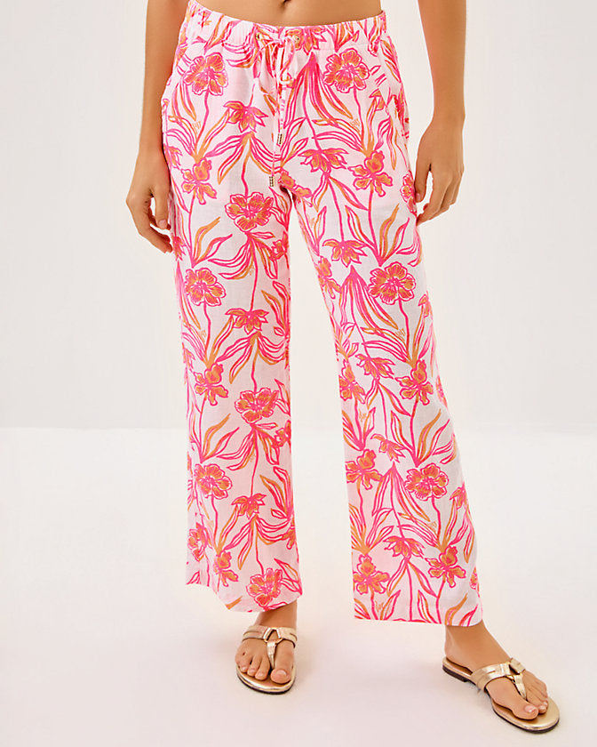 27" Brawley Linen Crop Pant - Resort White Lovely Long Stems