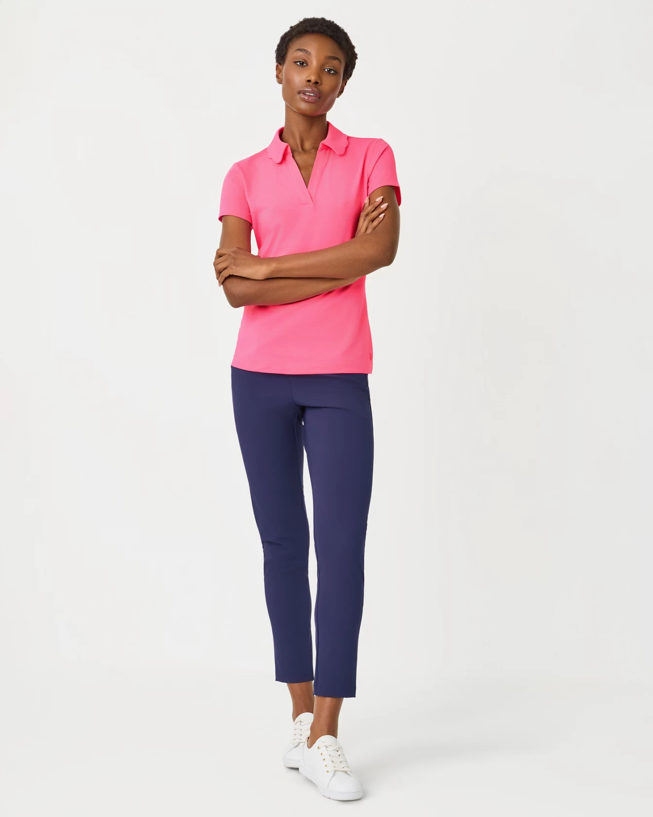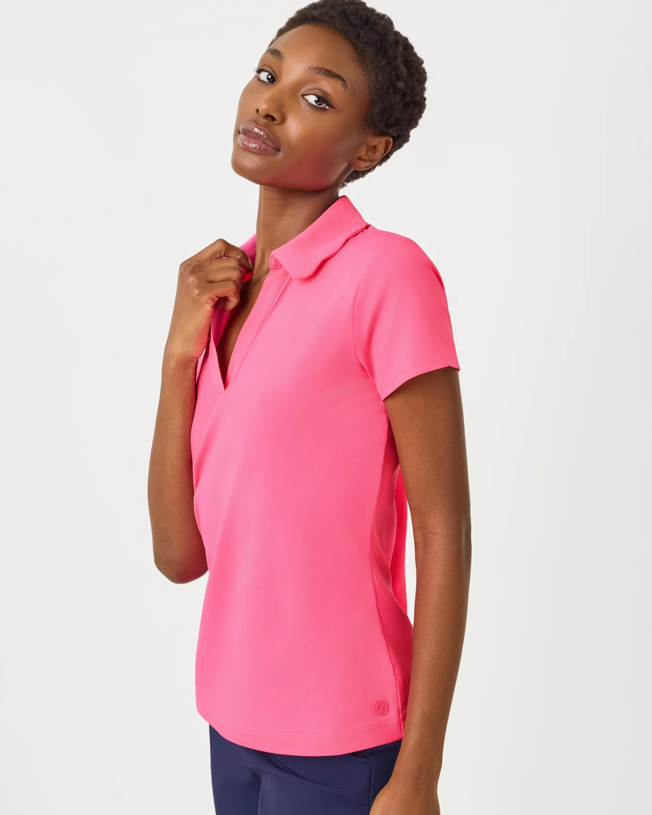 UPF 50+ Luxletic Frida Scallop Polo - Cherry Blossom Pink