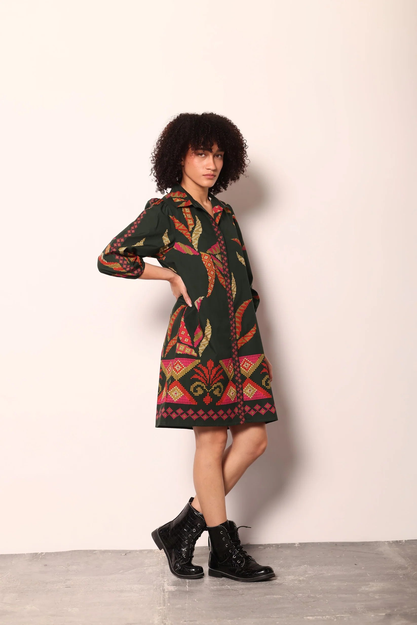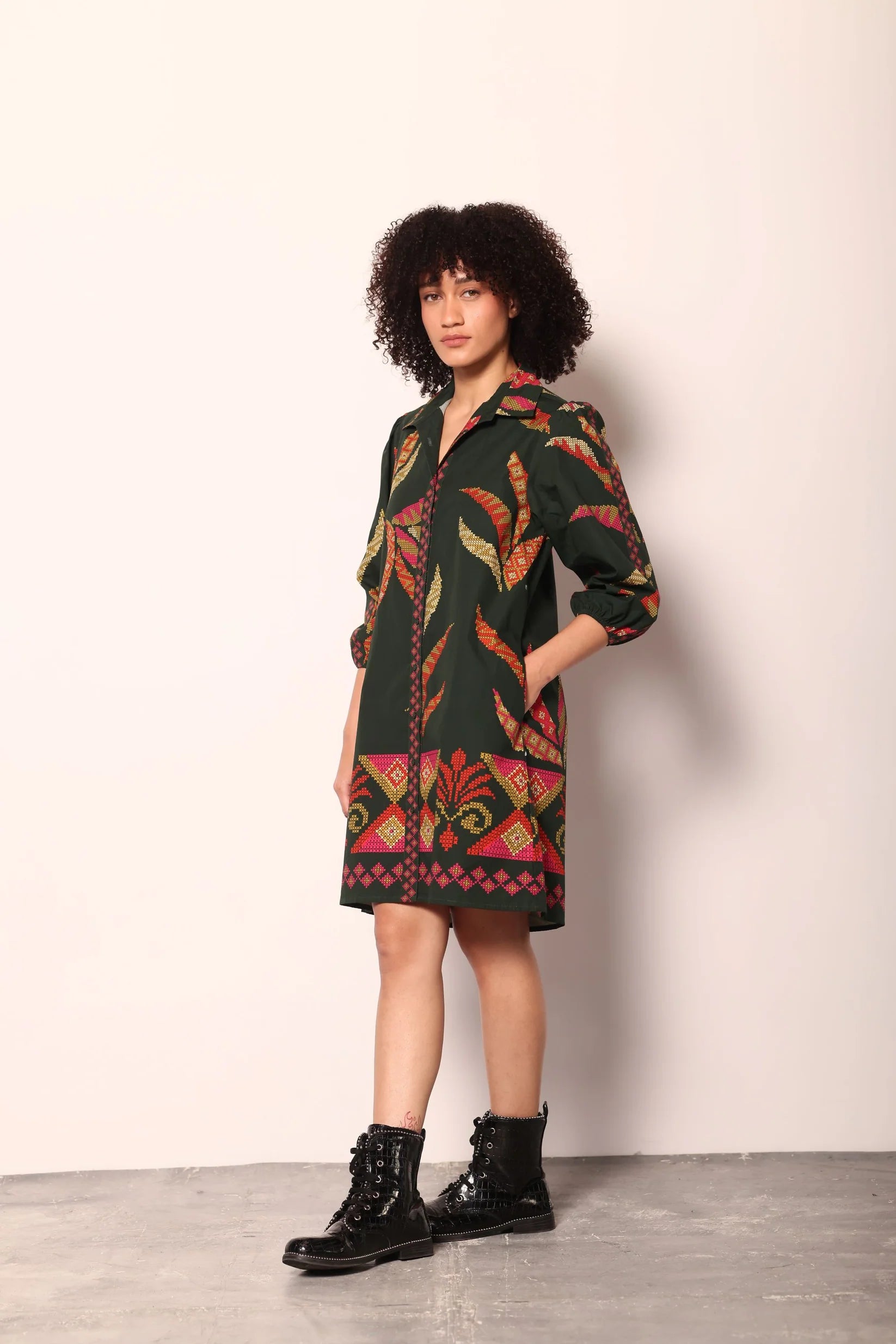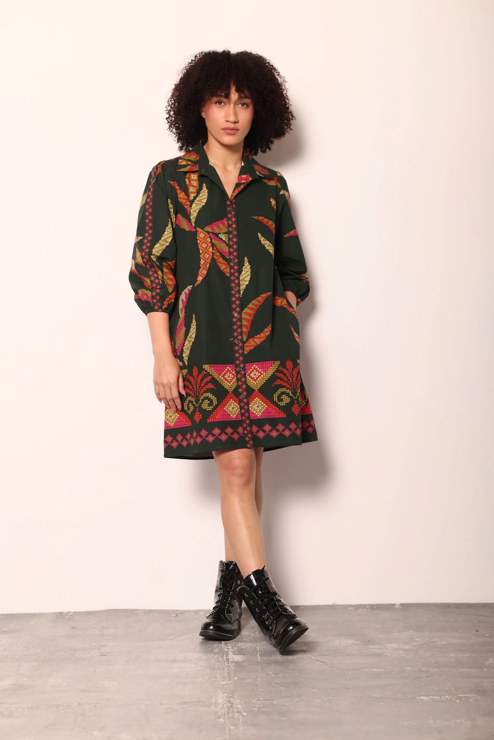UPF 50+ Luxletic Catarina Ruffle Dress - Bamboo Green Open Butterfly Pattern