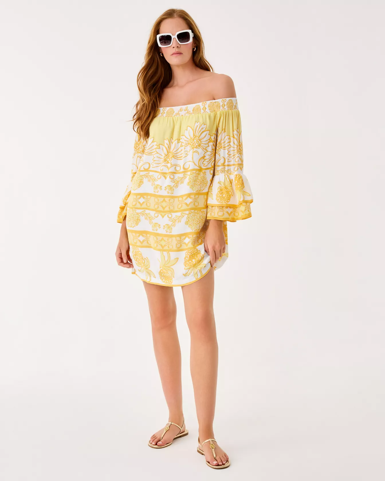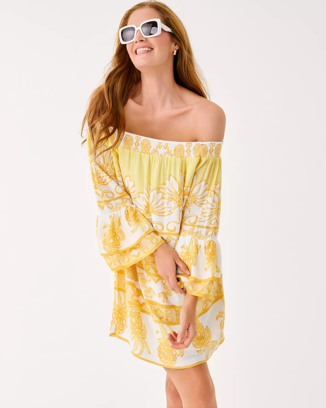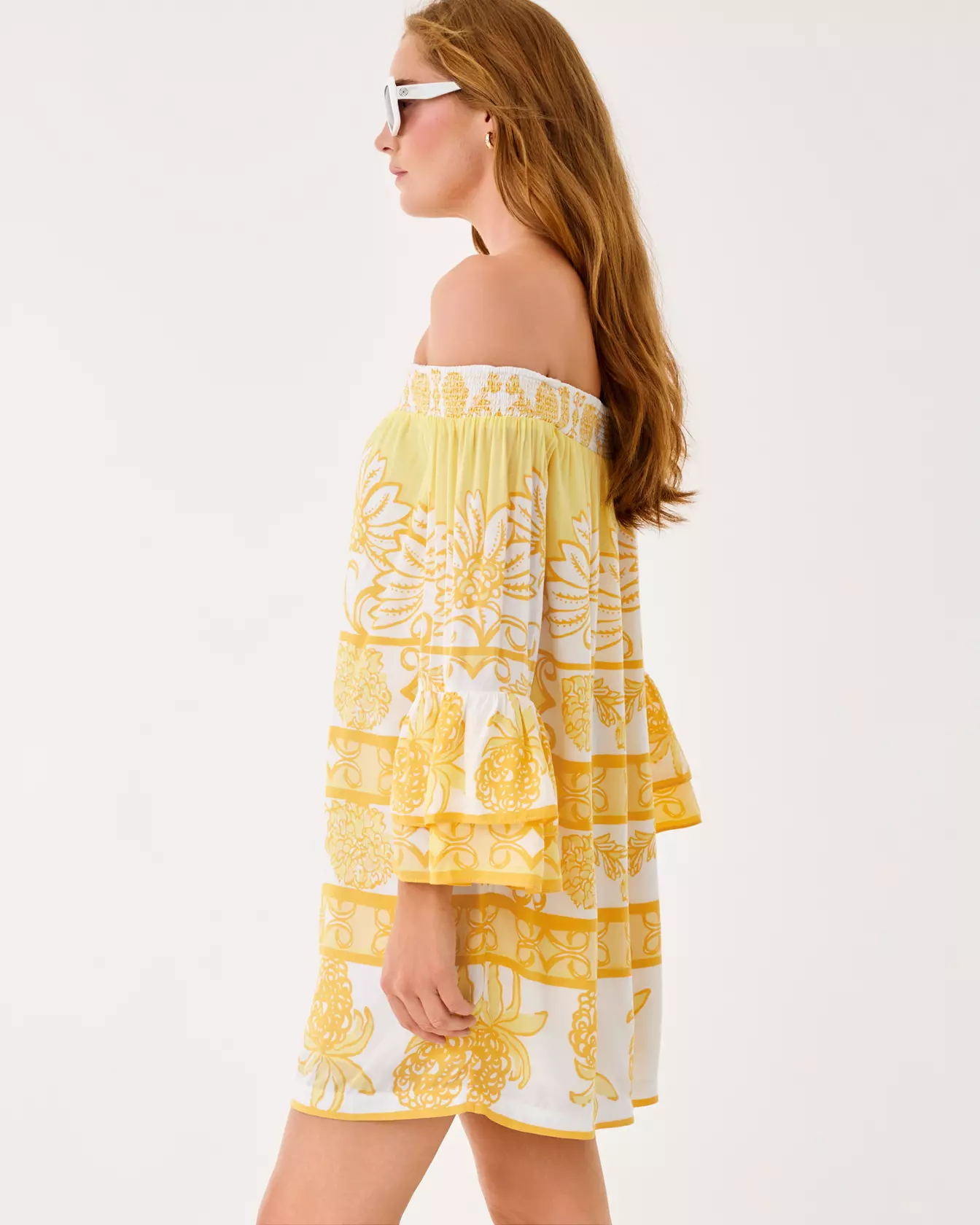 Kaori Off-the-Shoulder Dress - Golden Glow Juicy Story Engineered Woven Dress