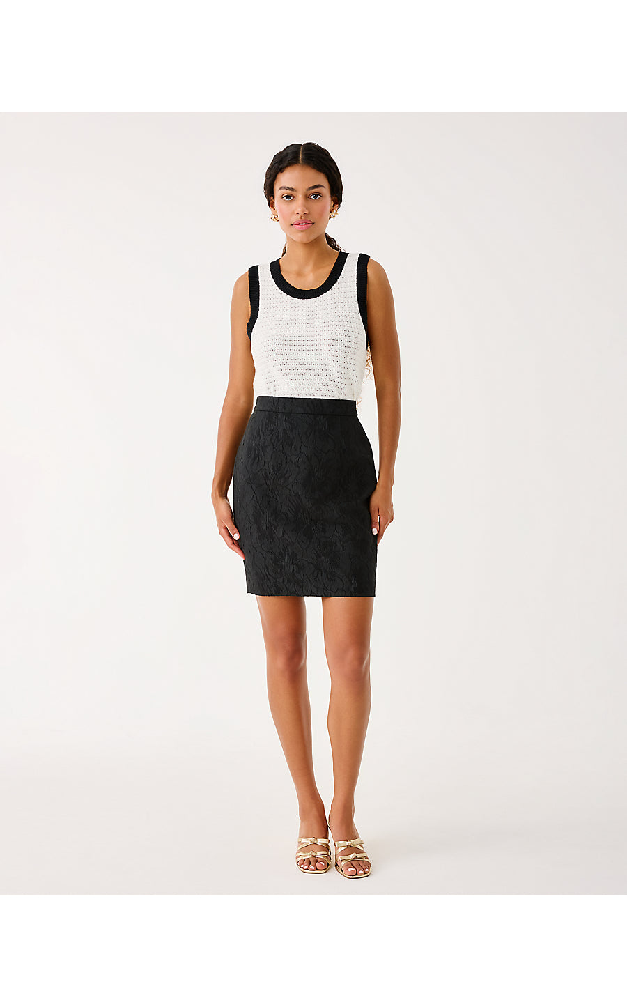 Candee Jacquard Pencil Skirt - Noir Exploded Flower Stretch Jacquard