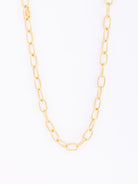 Elevate your everyday style with the Collins Necklace, featuring a sleek paperclip-style chain in a radiant gold finish. Its modern, elongated links create a bold yet versatile look that layers effortlessly with other pieces or makes a statement on its own. Perfect for dressing up casual outfits or adding a refined touch to evening wear, this timeless design is a must-have for your jewelry collection.